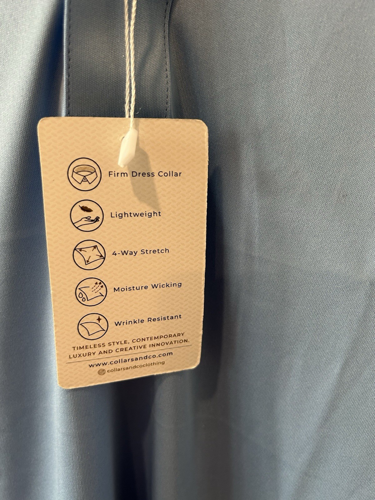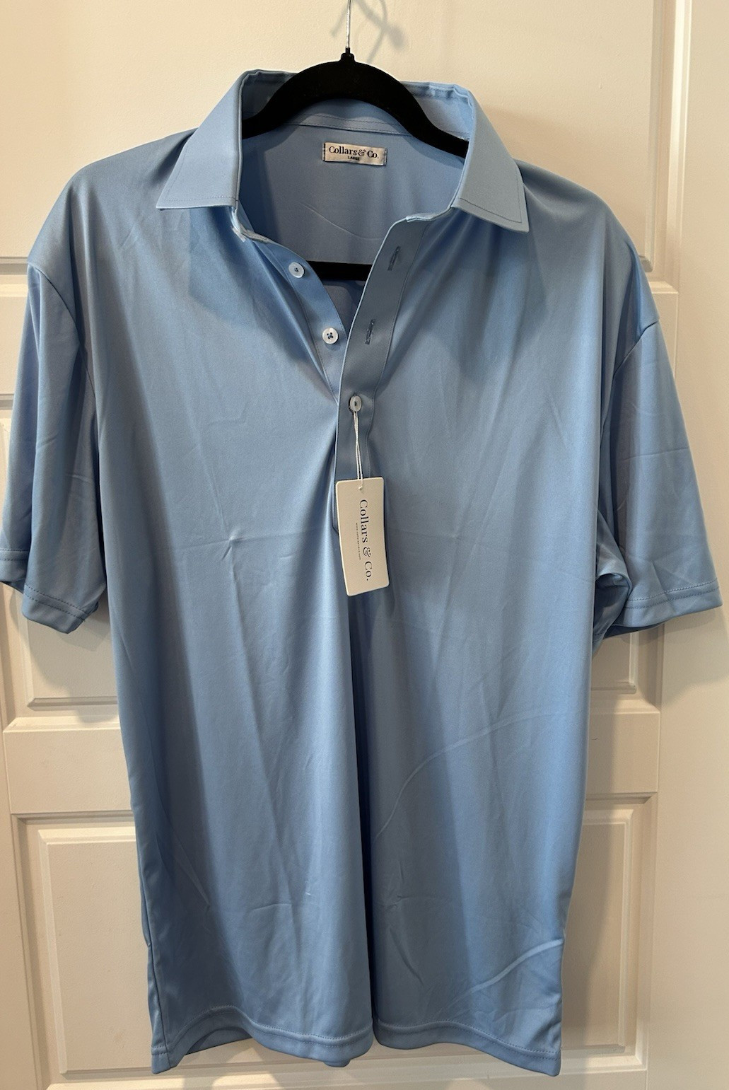 New Collars and Co Dress Collar Polo Shirt Mens Large Blue Performance Golf 88