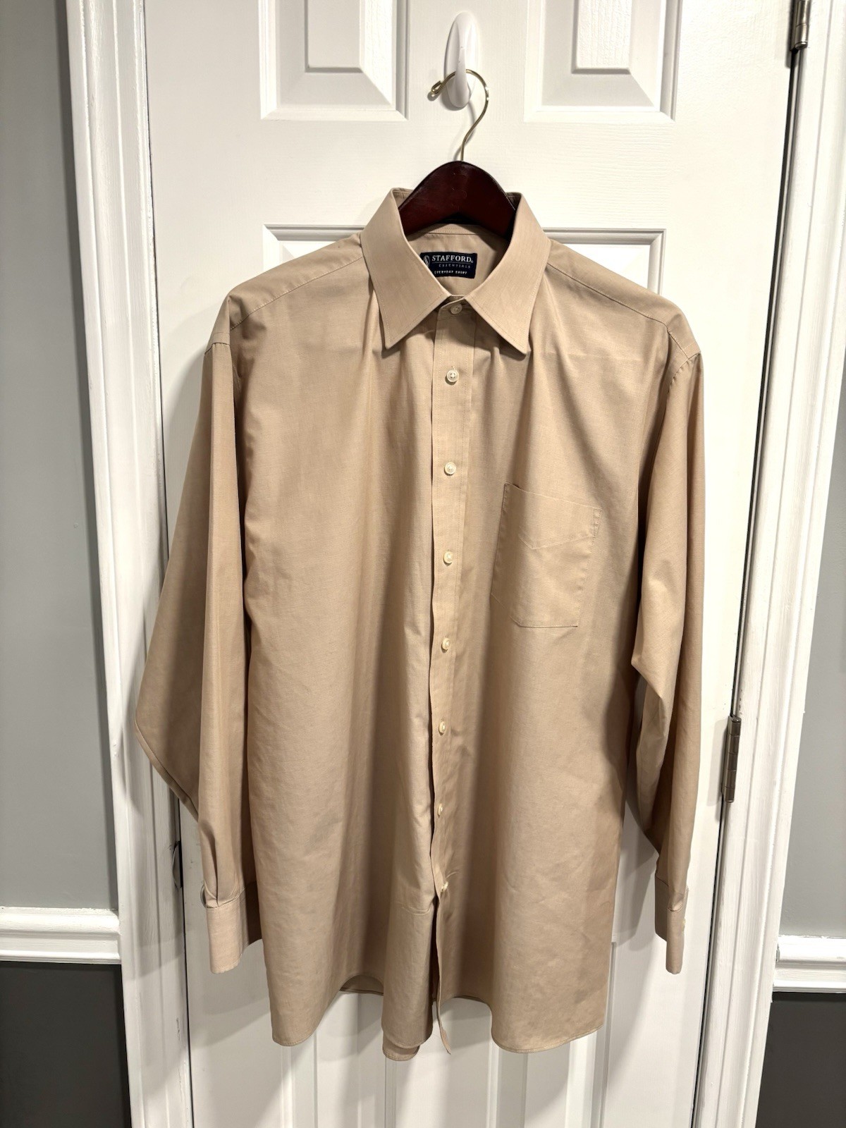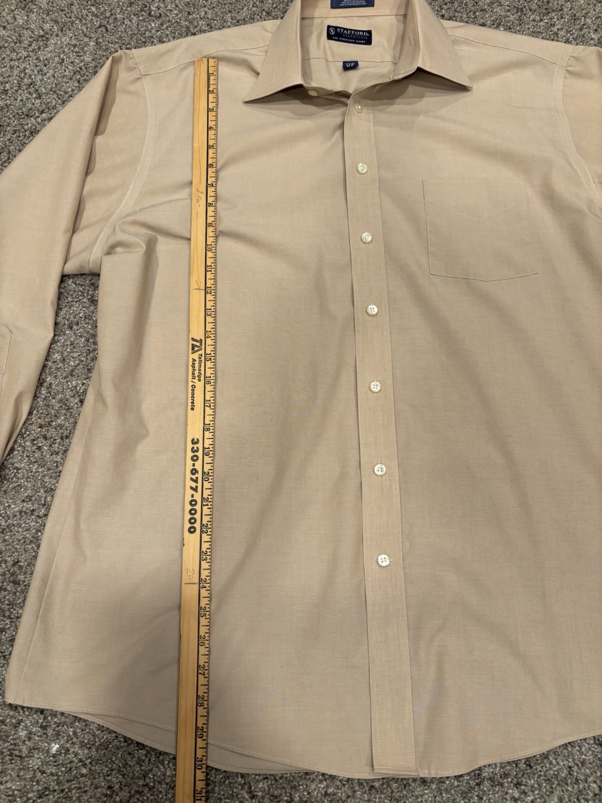 как выглядит Stafford Mens The Everyday Shirt Tan Button Up Fitted Size 17.5 34-35 фото