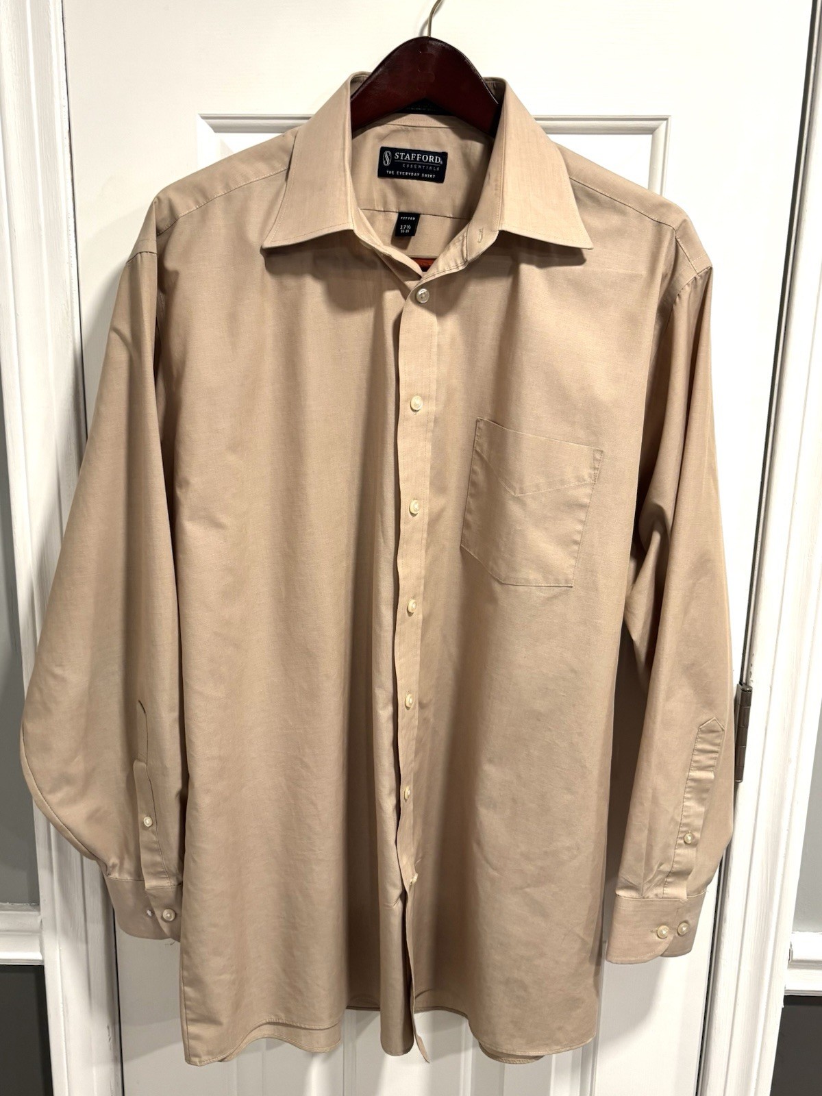 Stafford Mens The Everyday Shirt Tan Button Up Fitted Size 17.5 34-35
