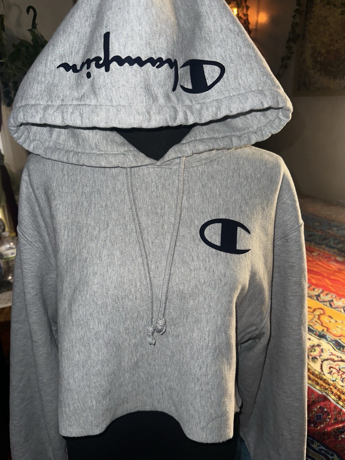Champion Reverse Weave Pullover Hoodie Gray Women s M Hooded Logo Fleece