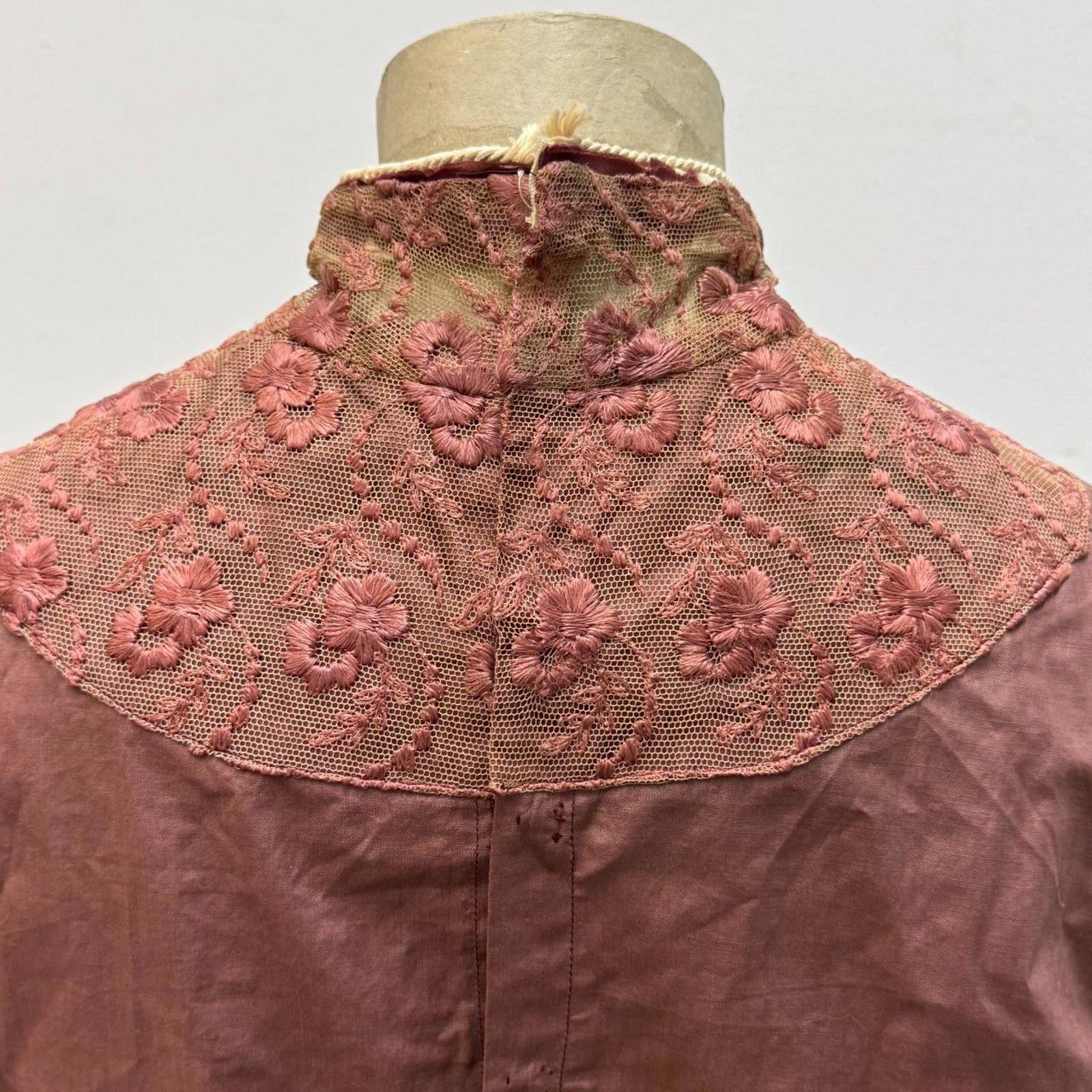 как выглядит Brick Red Antique Victorian Lace-Panel Bodice XS фото