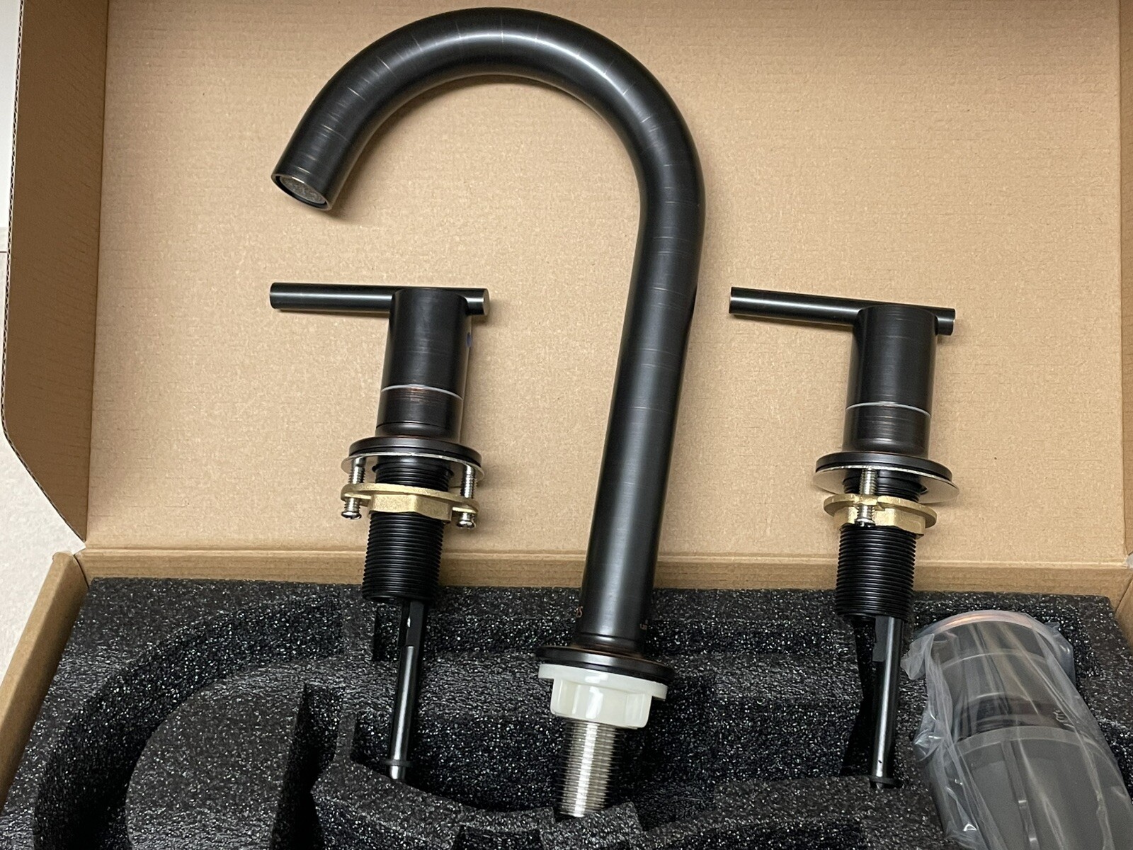 как выглядит KENES Oil Rubbed Bronze Widespread Bathroom Faucet Two Handle, 8", Pop-up Drain фото