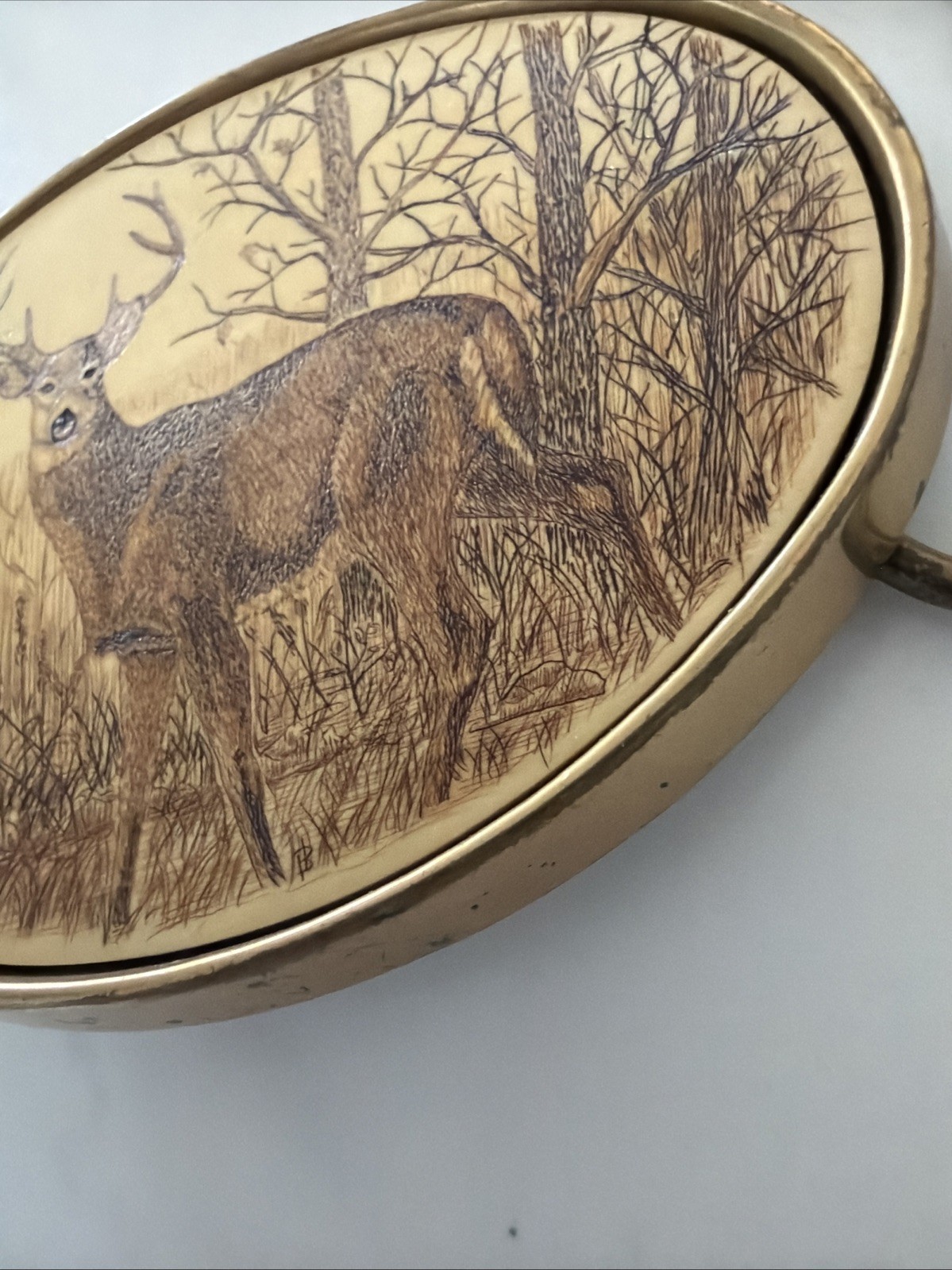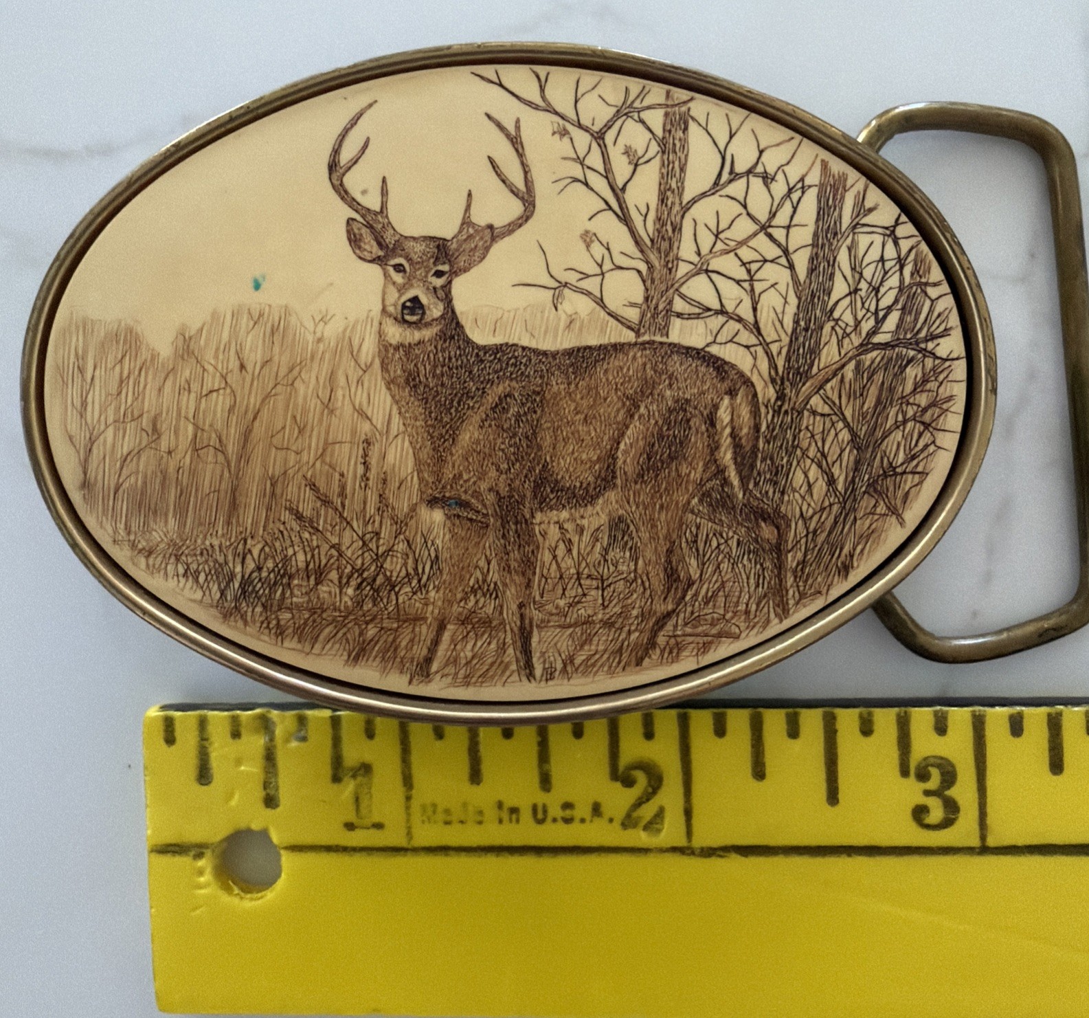 как выглядит Vintage Barlow Belt Buckle Deer Stag Elk Buck Hunt Hunting Solid Brass 1983 USA фото