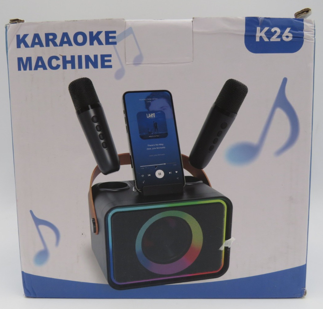 Karaoke Machine Portable Bluetooth Speaker W 2 Wireless Microphone Black NEW