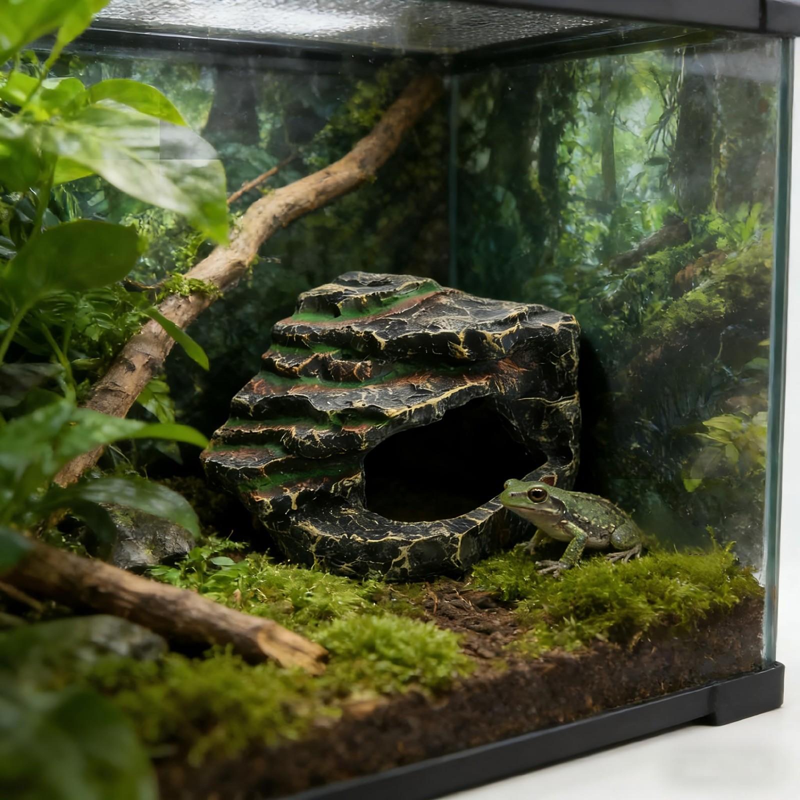 Rock Cave Habitat Hide for Reptiles Amphibians - Wide Opening Design for Ea...