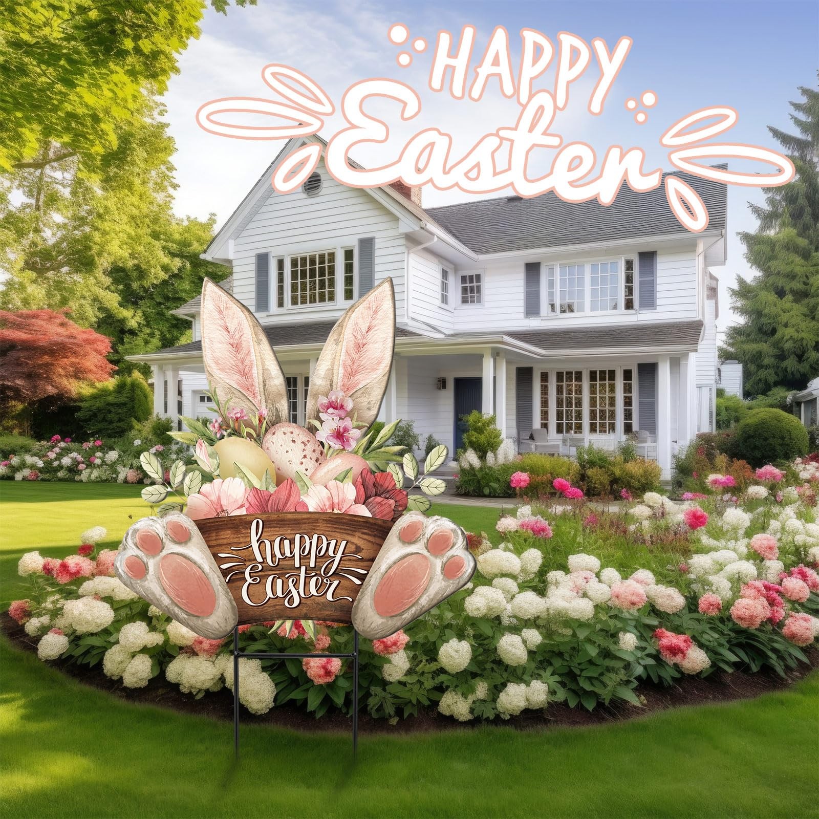 Happy Easter Outdoor Decorations Bunny Metal Garden Stakes 25 Inch Welcome Yard.