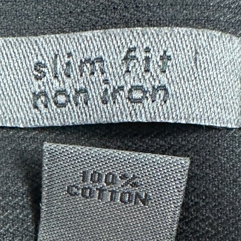 как выглядит NEW Calvin Klein Shirt Mens 19 36-37 Tall Black Slim Dress Herringbone Button Up фото