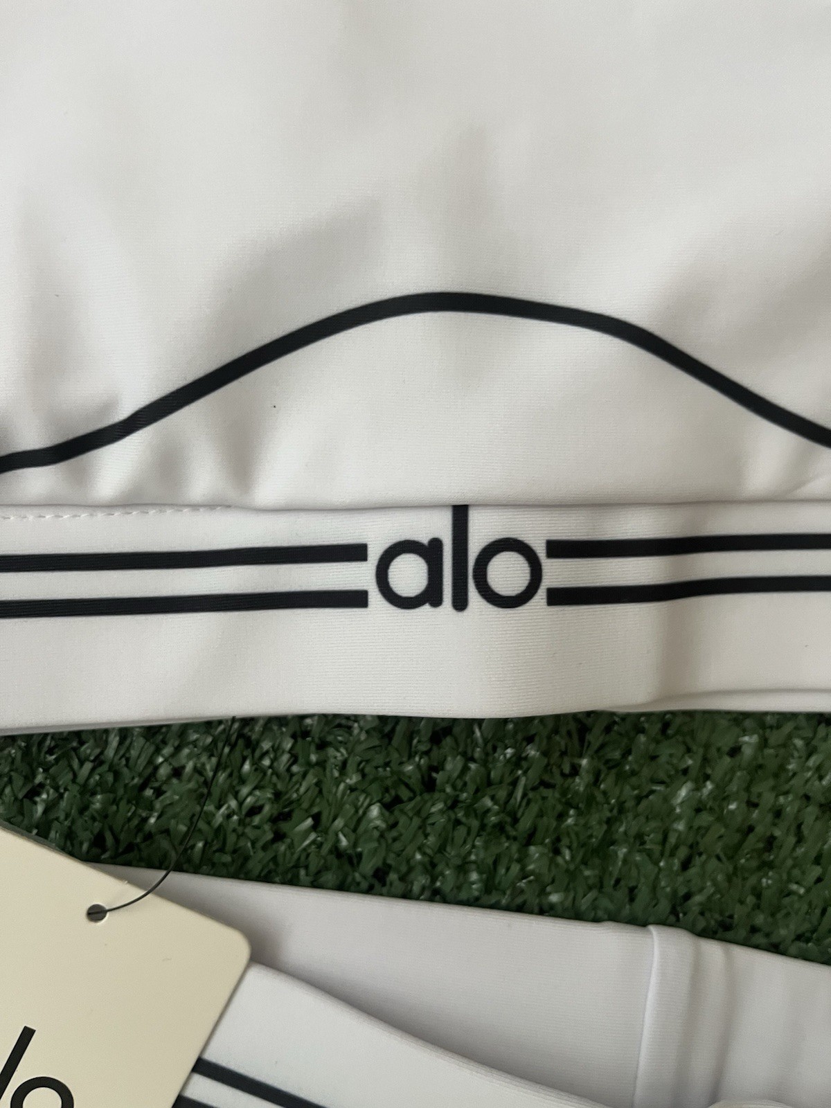 как выглядит Alo Yoga Womens White Sports Bra Leggings Set S Contrast Piping фото