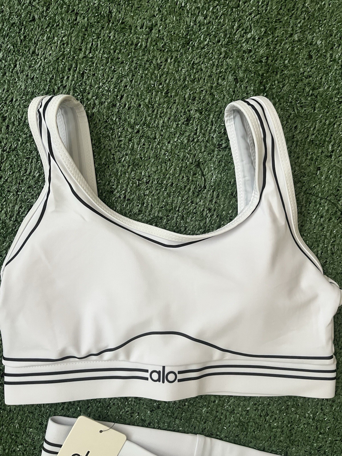 Alo Yoga Women's White Sports Bra Leggings Set S Contrast Piping