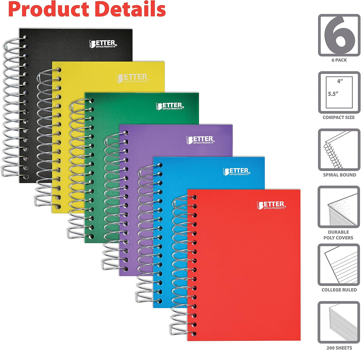 Fat Book Spiral Notebooks, 6 Pack, Small Notebooks with Poly Plastic Covers, 5.5