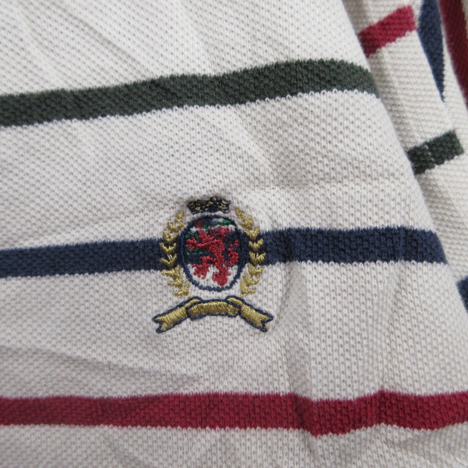 Tommy Hilfiger Polo Shirt Mens XL White Striped Cotton Short Sleeve Golf Classic