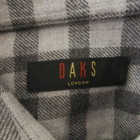 DAKS Wool Check Shirt Long Sleeve Regular Fit Gray Logo Embroidery Used