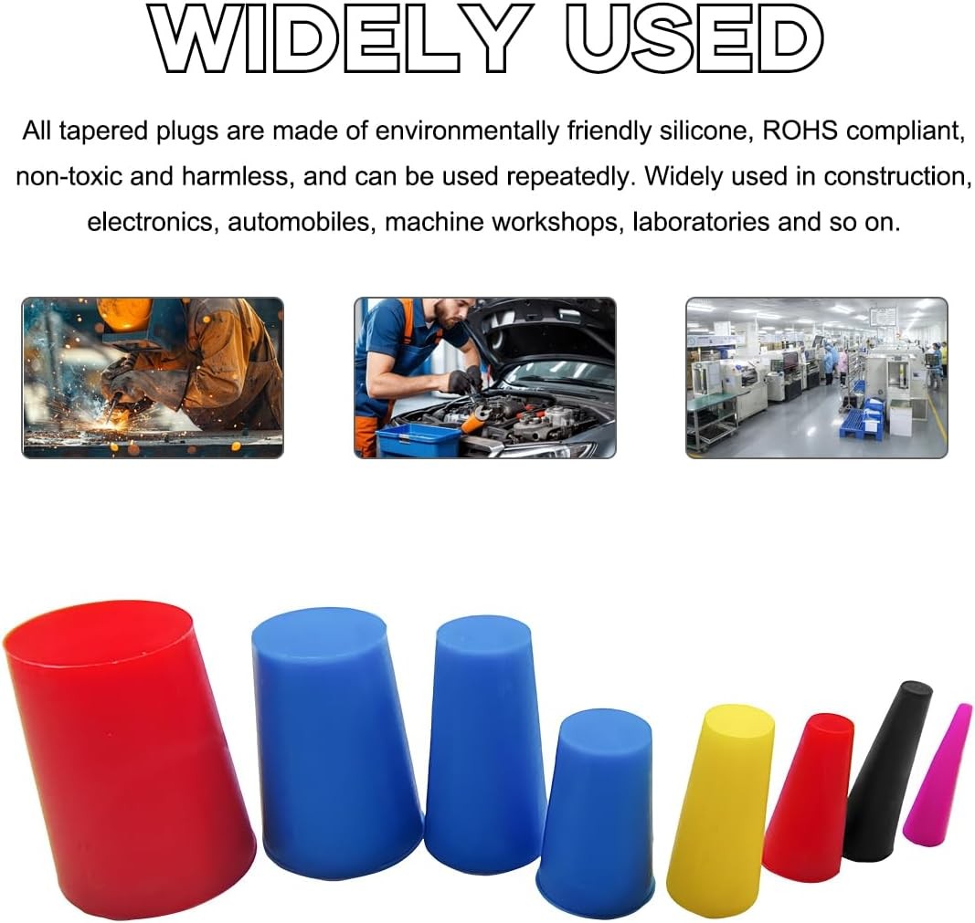 100 PCS Silicone Tapered Plug Kit, High Temp Resistant Silicone Stoppers Assortm