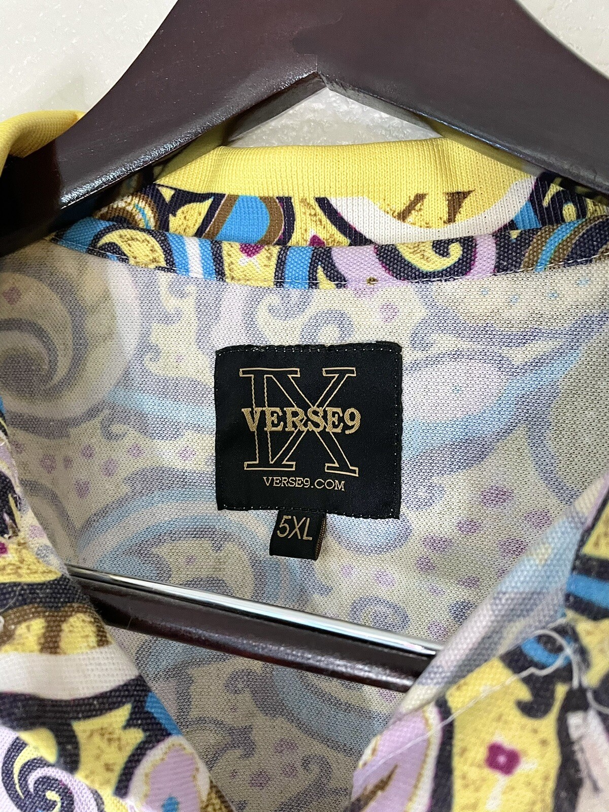 как выглядит Verse 9 Polo Shirt Men 5XL Yellow Paisley Bright Short Sleeve Pullover Adult фото