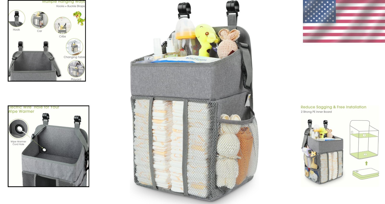 как выглядит Hanging Diaper Stacker for Cribs - Baby Essentials Holder фото