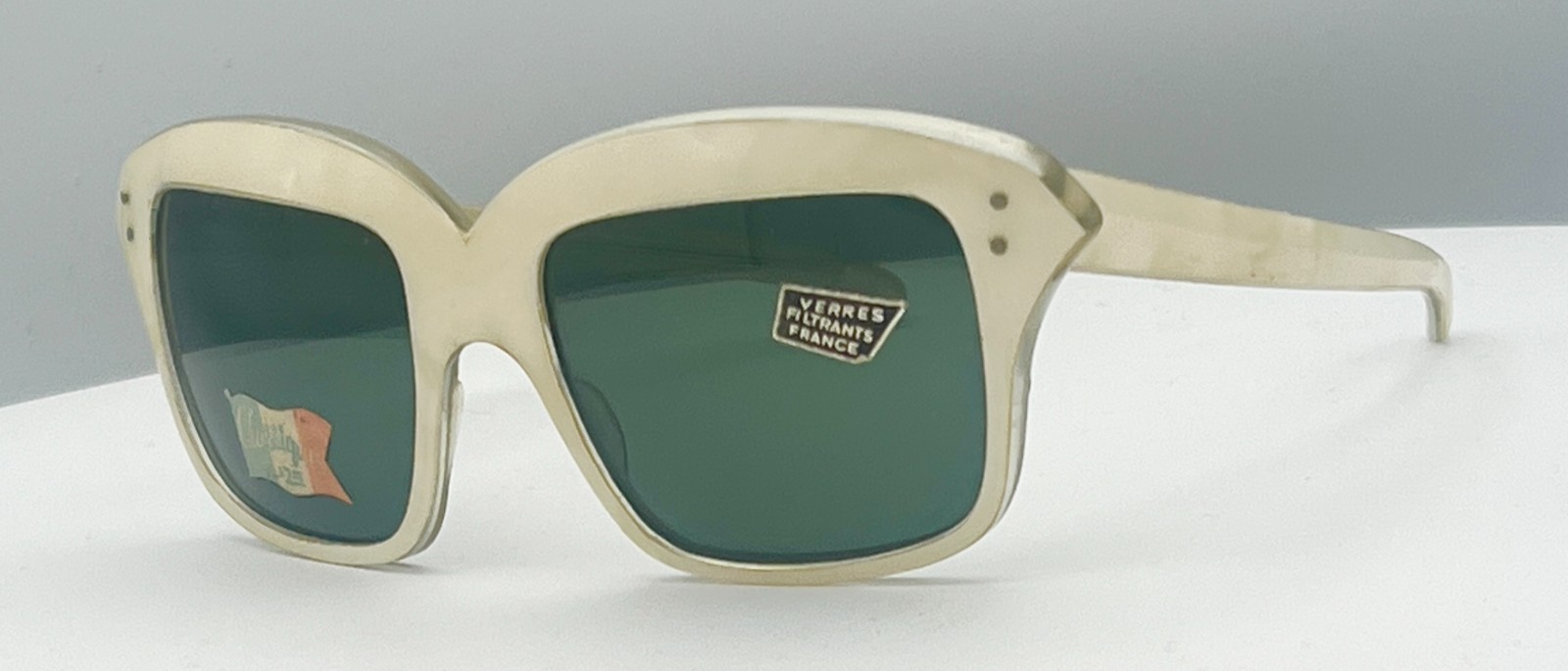 Vintage Mod NOS 1960s France Mother of Pearl Oversized Women's Sunglasses Non-Rx