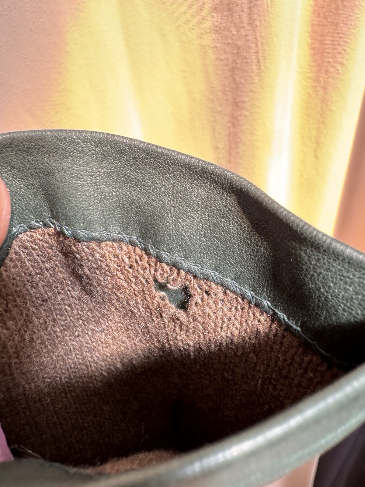 как выглядит Vintage Dark Green Leather Gloves Cashmere Lined Women Winter Gloves Philippines фото