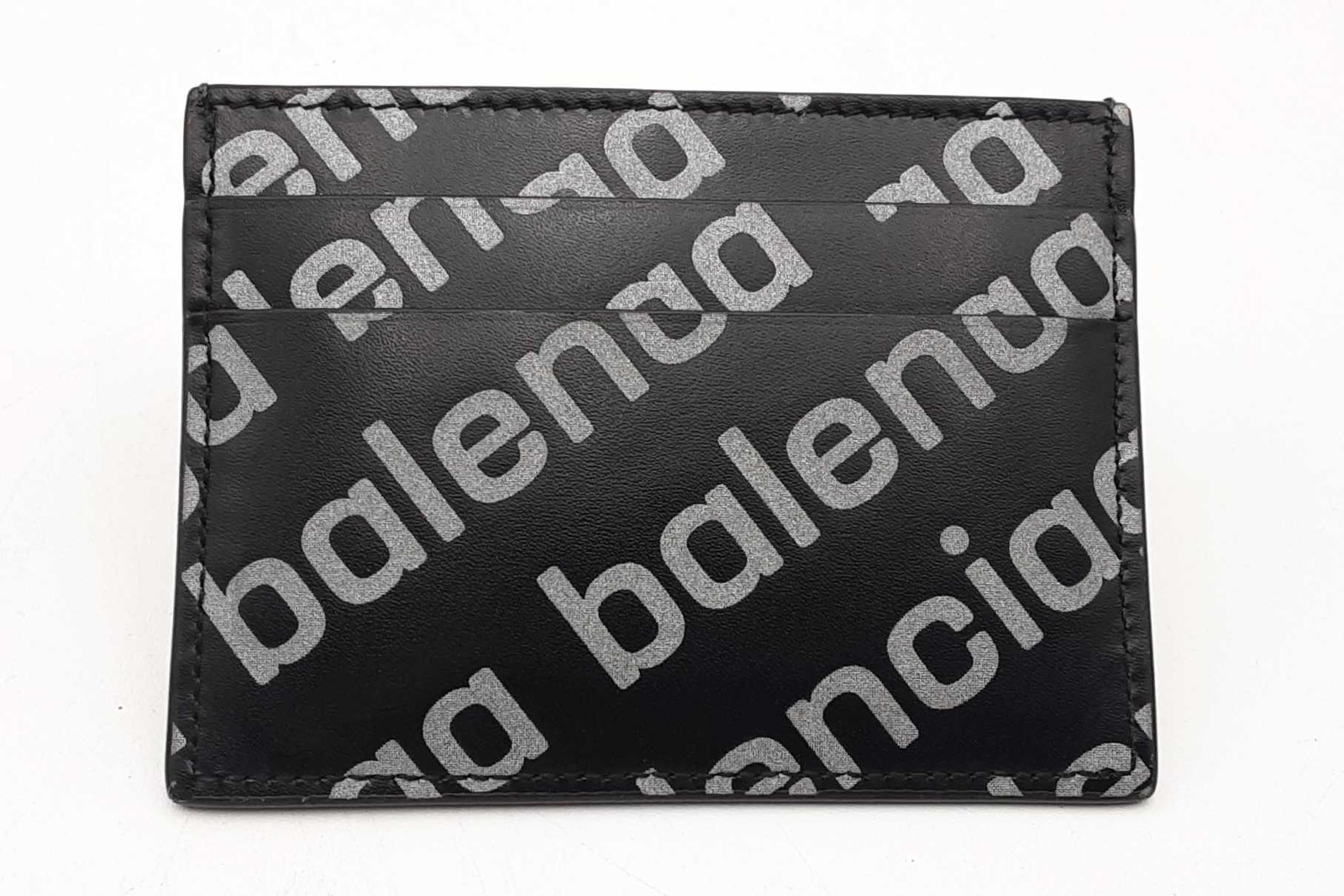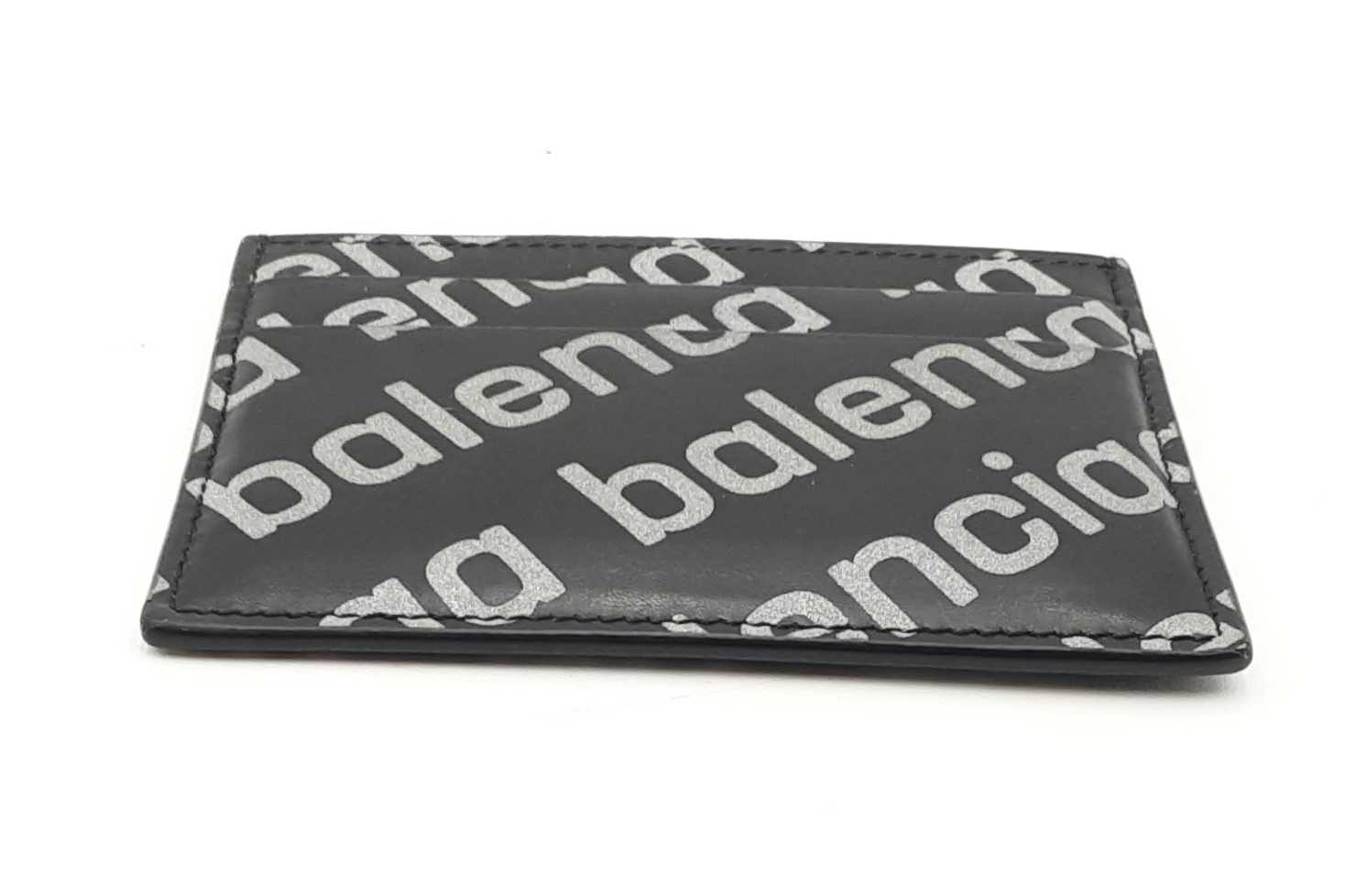 Balenciaga All Over Logo Black Leather Card Wallet Eb0226crsa