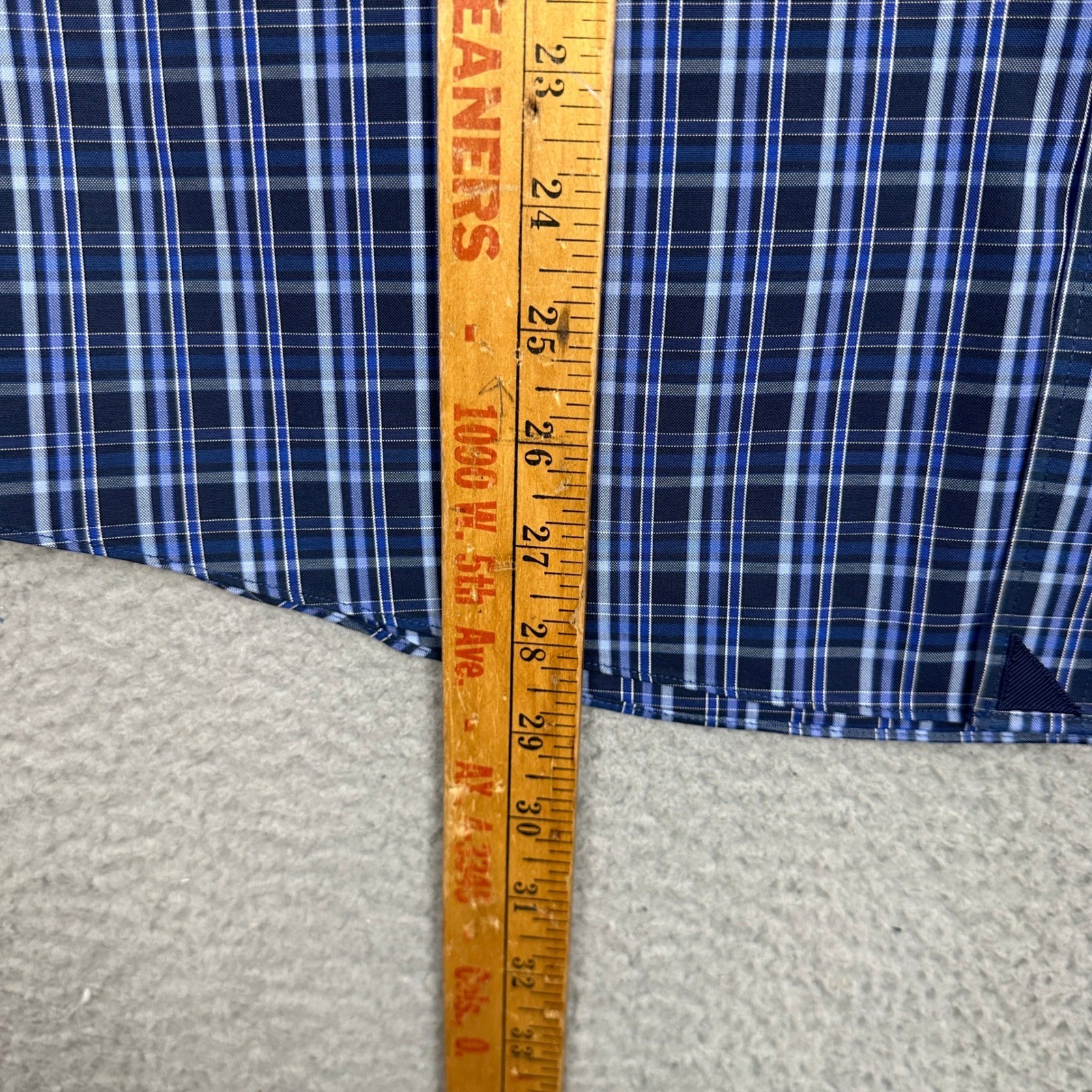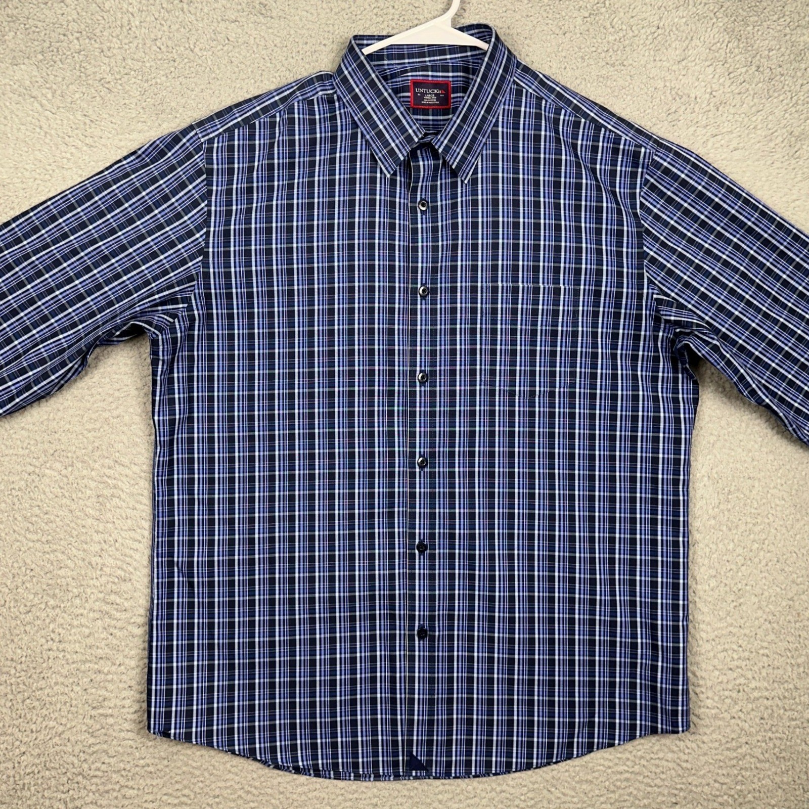 как выглядит UNTUCKit Shirt Men Large Navy Blue Button Up Plaid Long Sleeve Pocket Casual EUC фото