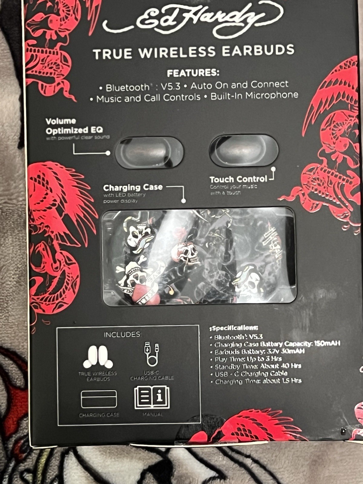 Ed Hardy True Wireless Bluetooth Earbuds with Charging Case Y2K