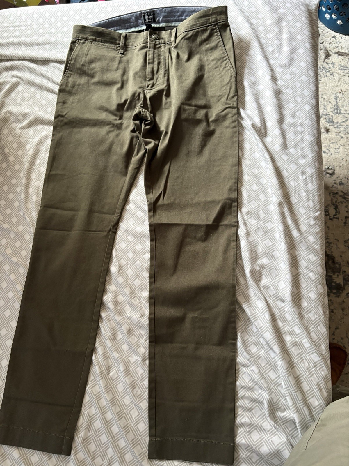 как выглядит J.CREW 250 Skinny Twill Olive Casual Pants Mens 32x32 Cotton Flat Front NWT фото