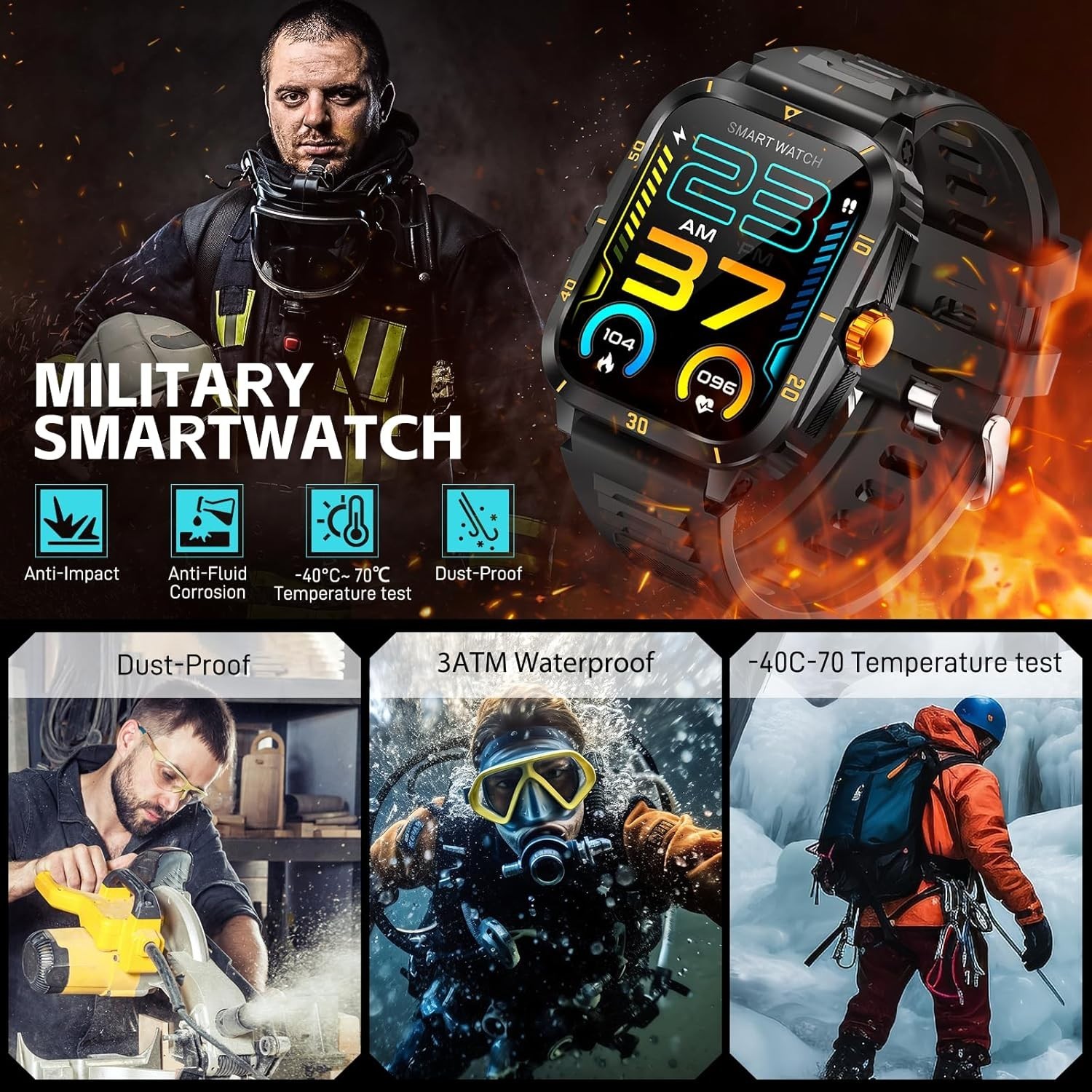 Military Smart Watches for Men Make/Answer Call Health Monitor Waterproof