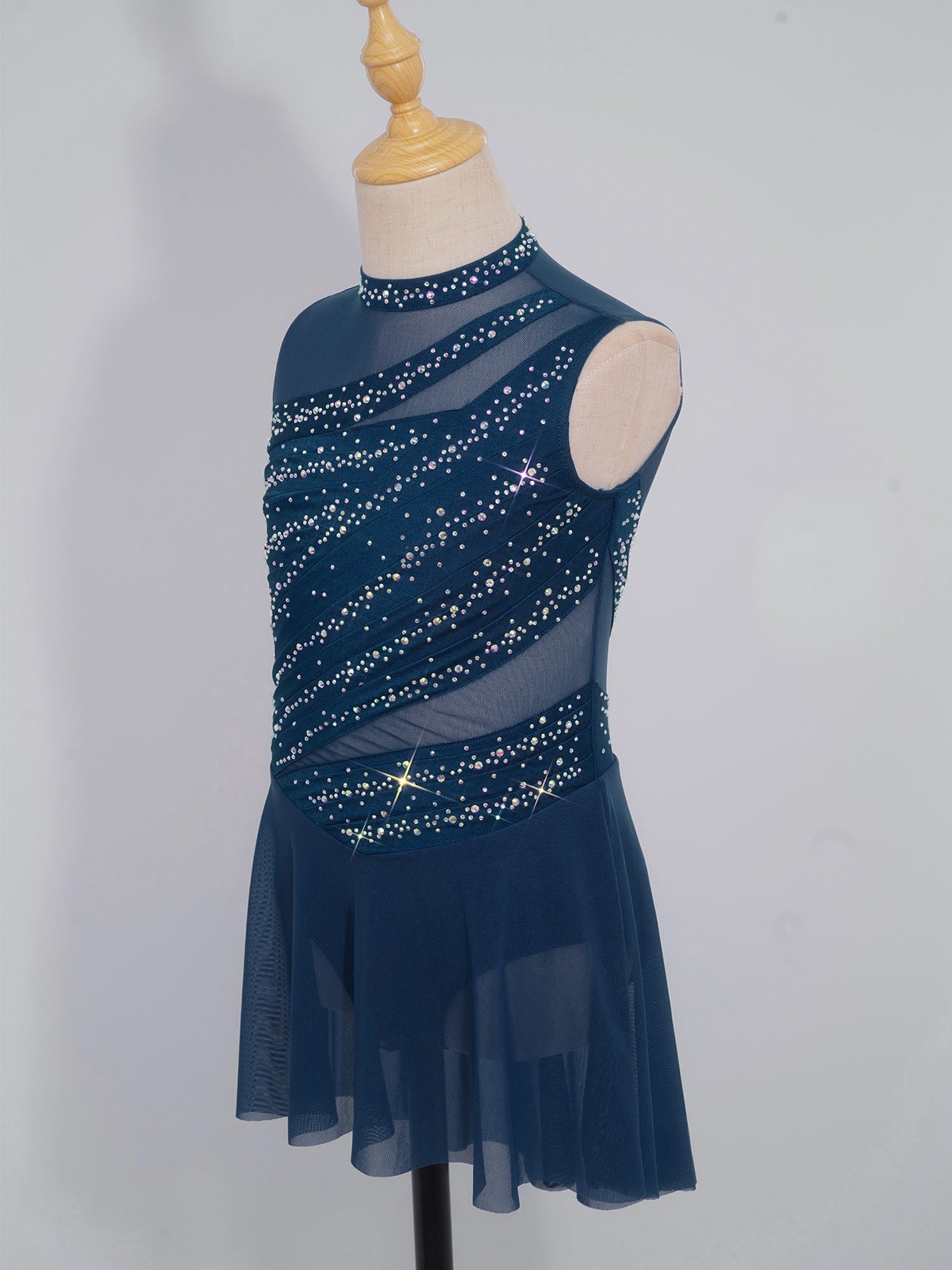 Kids Girls Lyrical Shiny Figure Skating Skirted Leotard Modern Ballet Dancewear