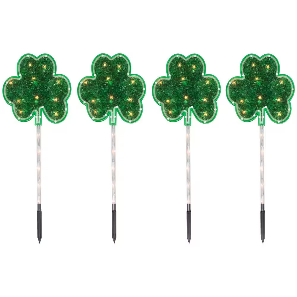 Green Shamrock St Patrick'S Day Pathway Marker Lawn Stakes, Clear Lights 4-Coun