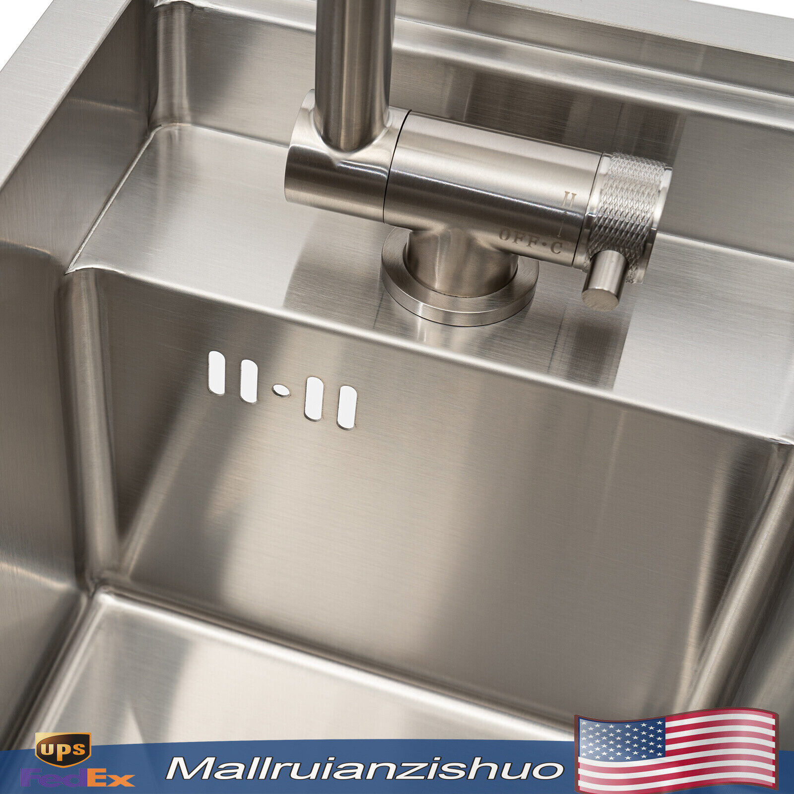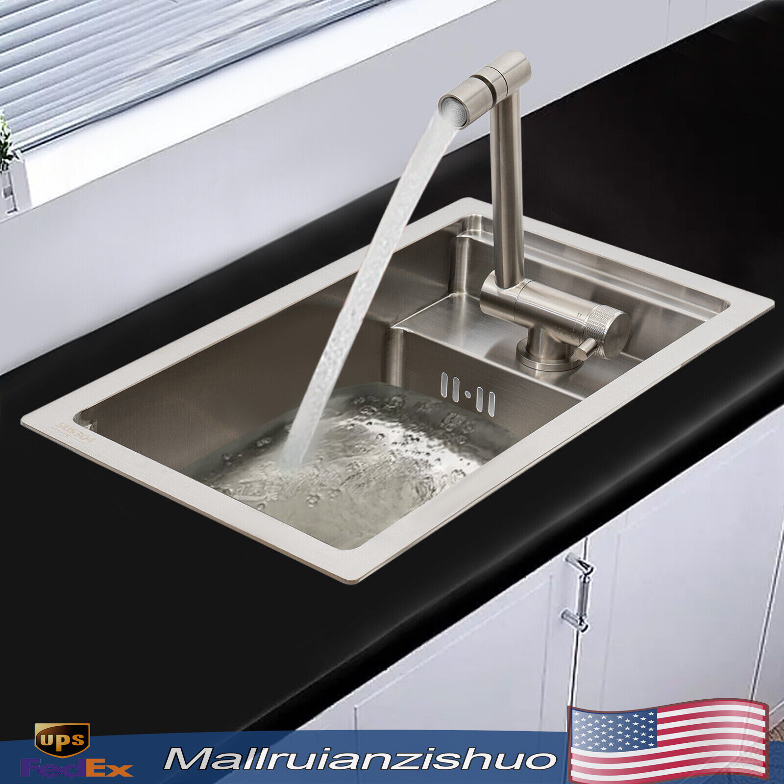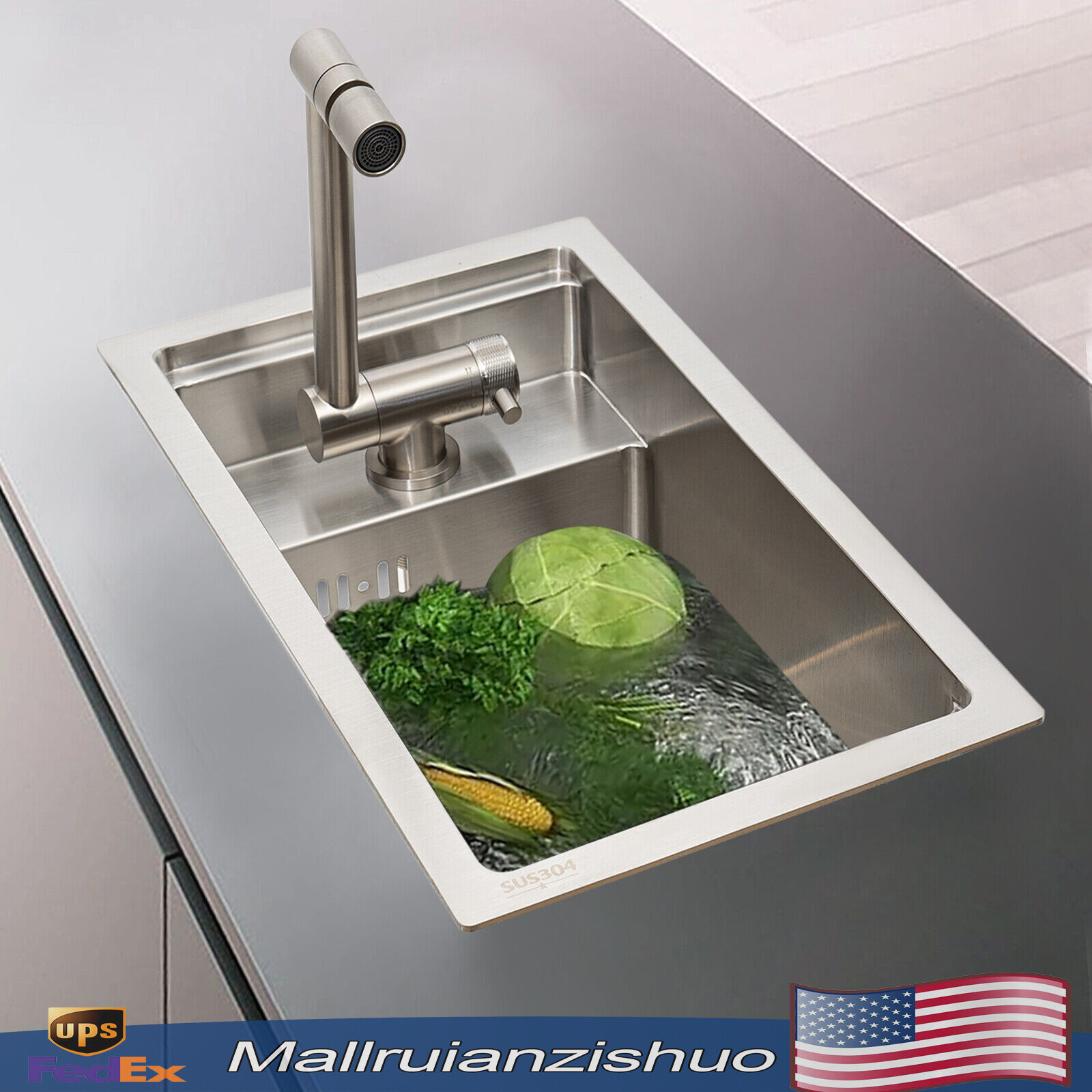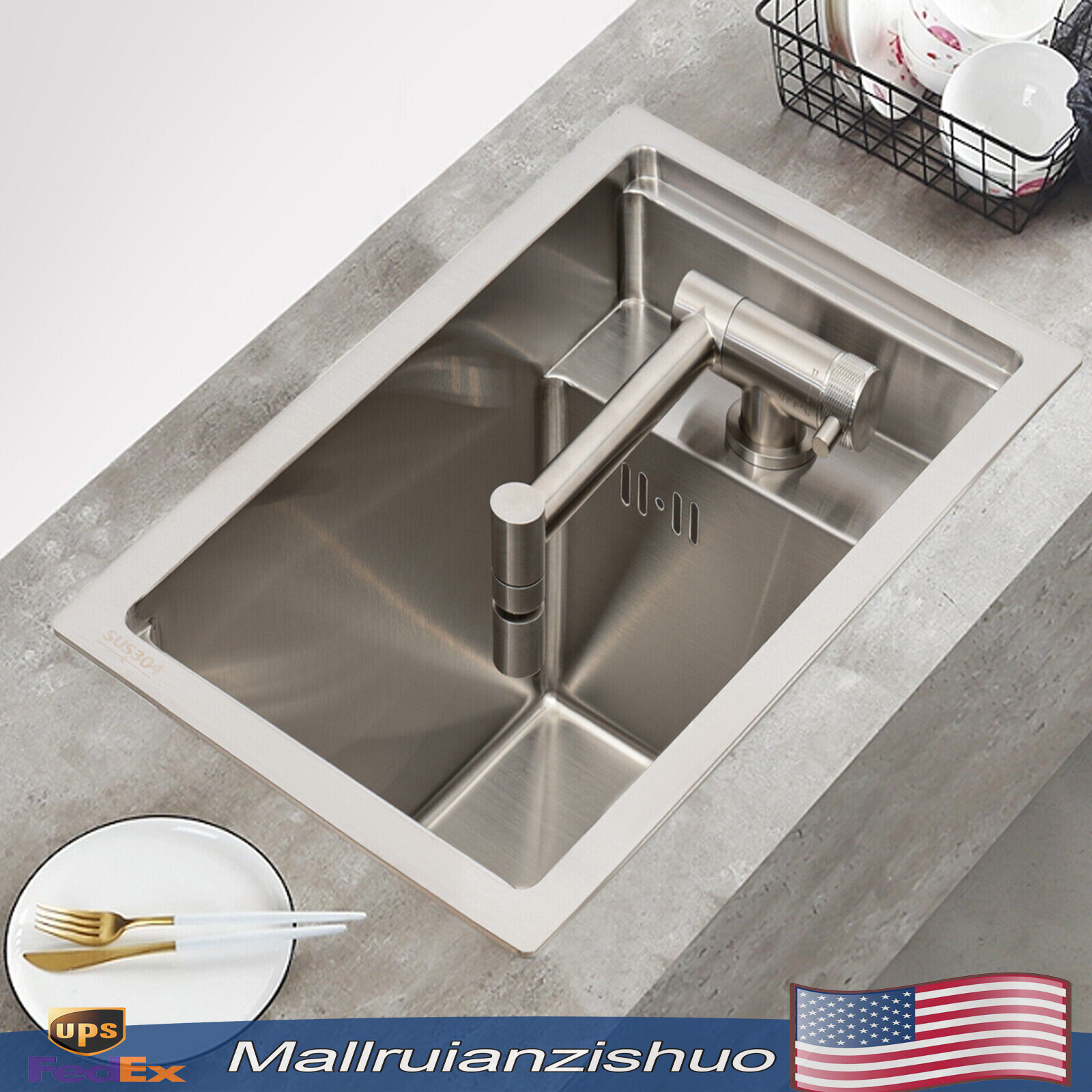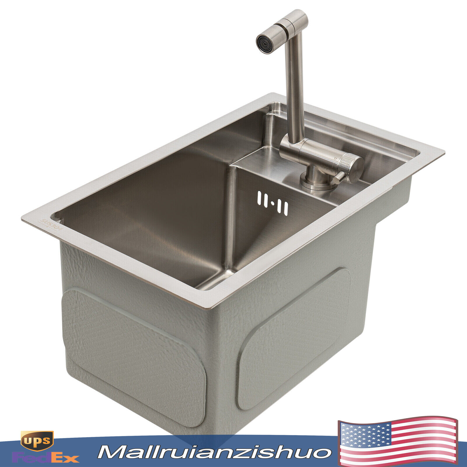 Single Bowl Bar Kitchen Laundry Sink Set Stainless Steel Hidden w/Folding Faucet