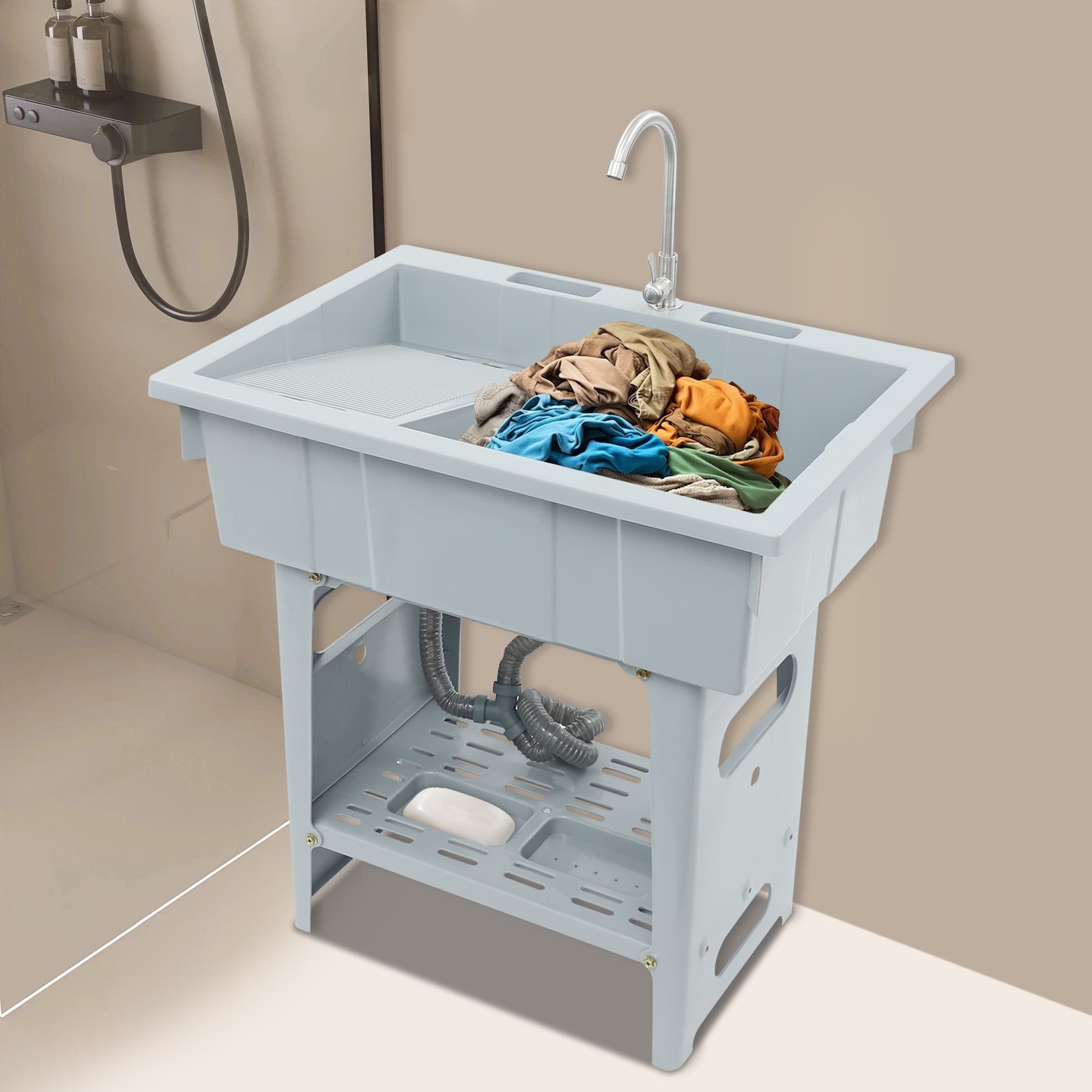 Utility Laundry Sink w/ Washboard Faucet Freestanding Laundry Sink 80 56 81cm