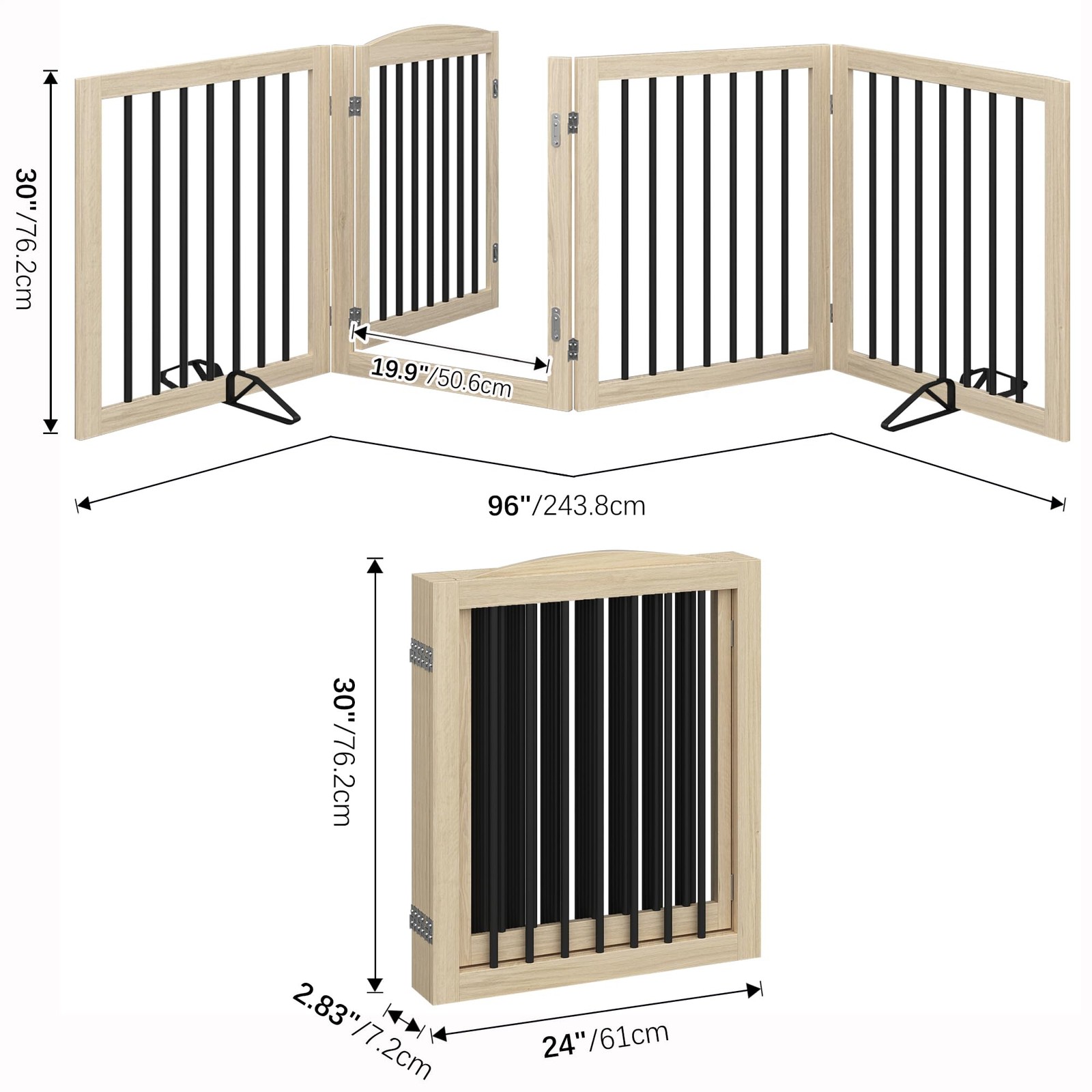 Folding Pet Gate 96 Wide, 30 Tall No-Assembly Wooden Dog Gate with Door Wal...