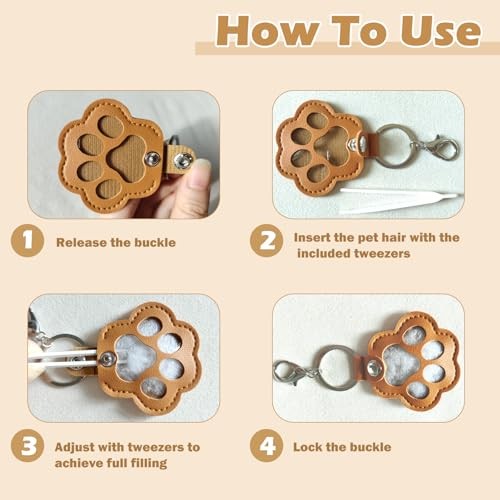 QQM 4PCS Pet Hair Keepsake Keychain, Dog Cat Fur Memory Storage Keyring, Paw