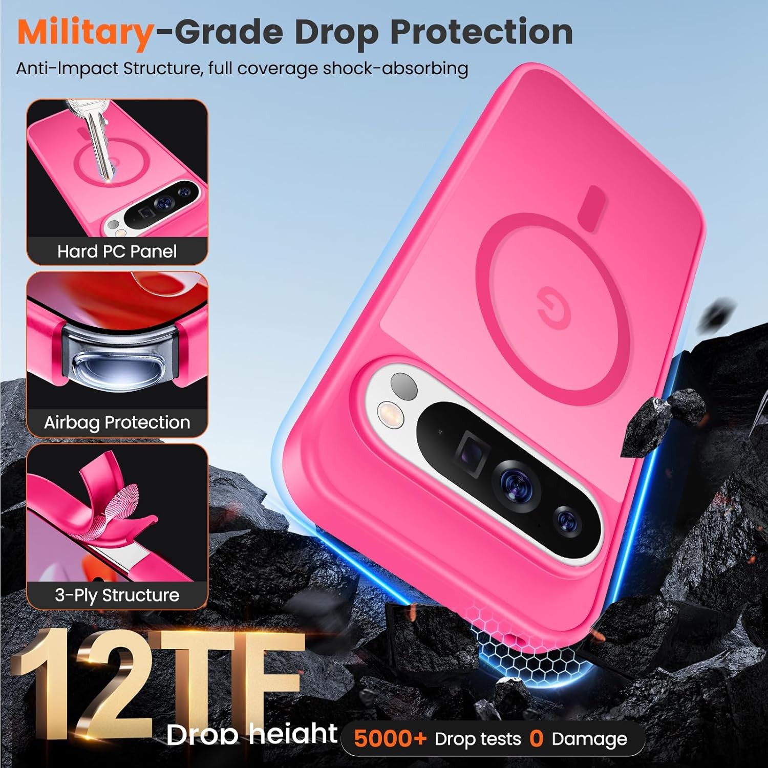 Google Pixel 9 pro XL Phone Case, Military Grade Drop Protection, Translucent Ma