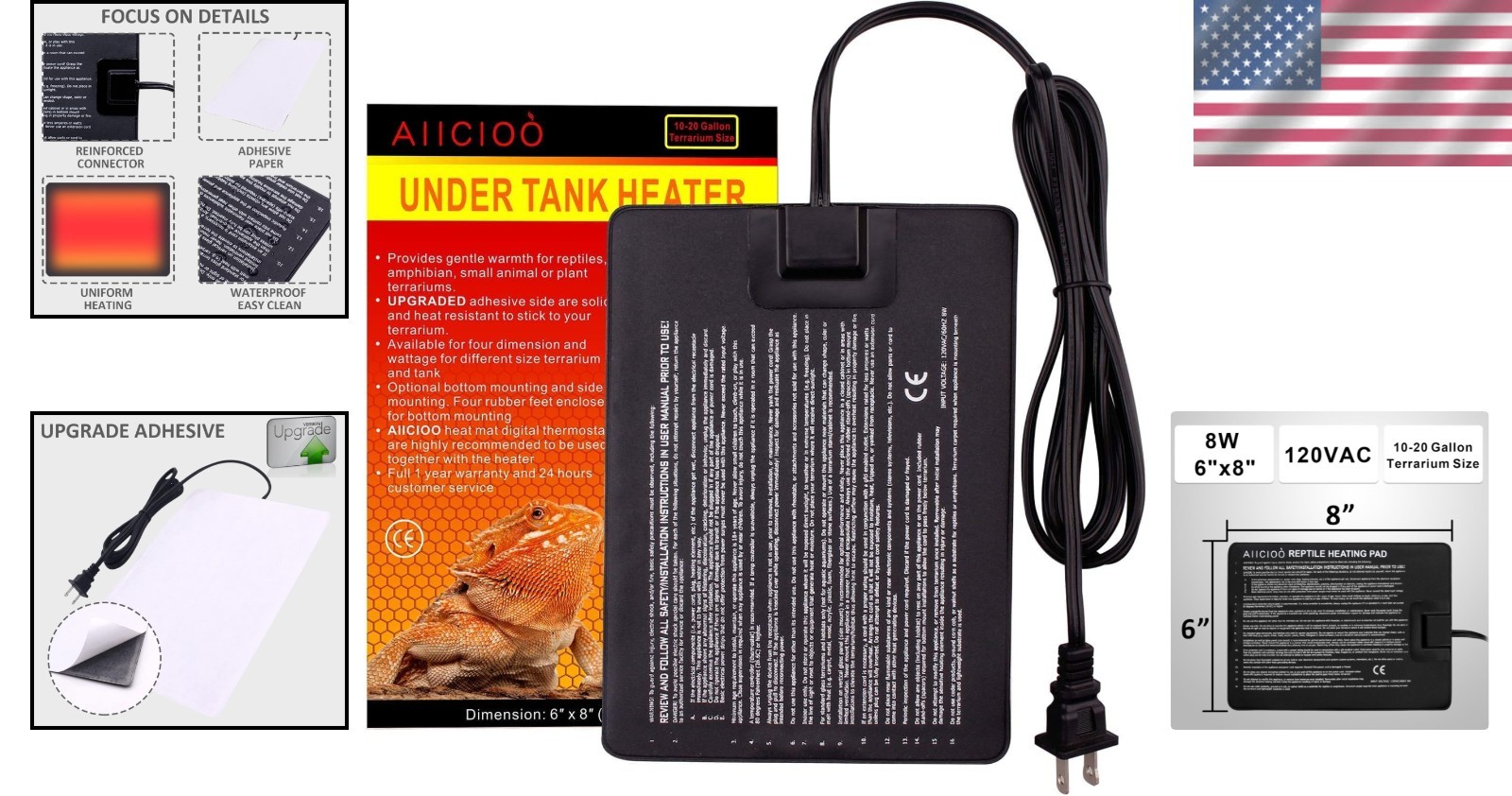 Waterproof Reptile Heating Pad with Thermostat - 8 Watt for Tank Comfort