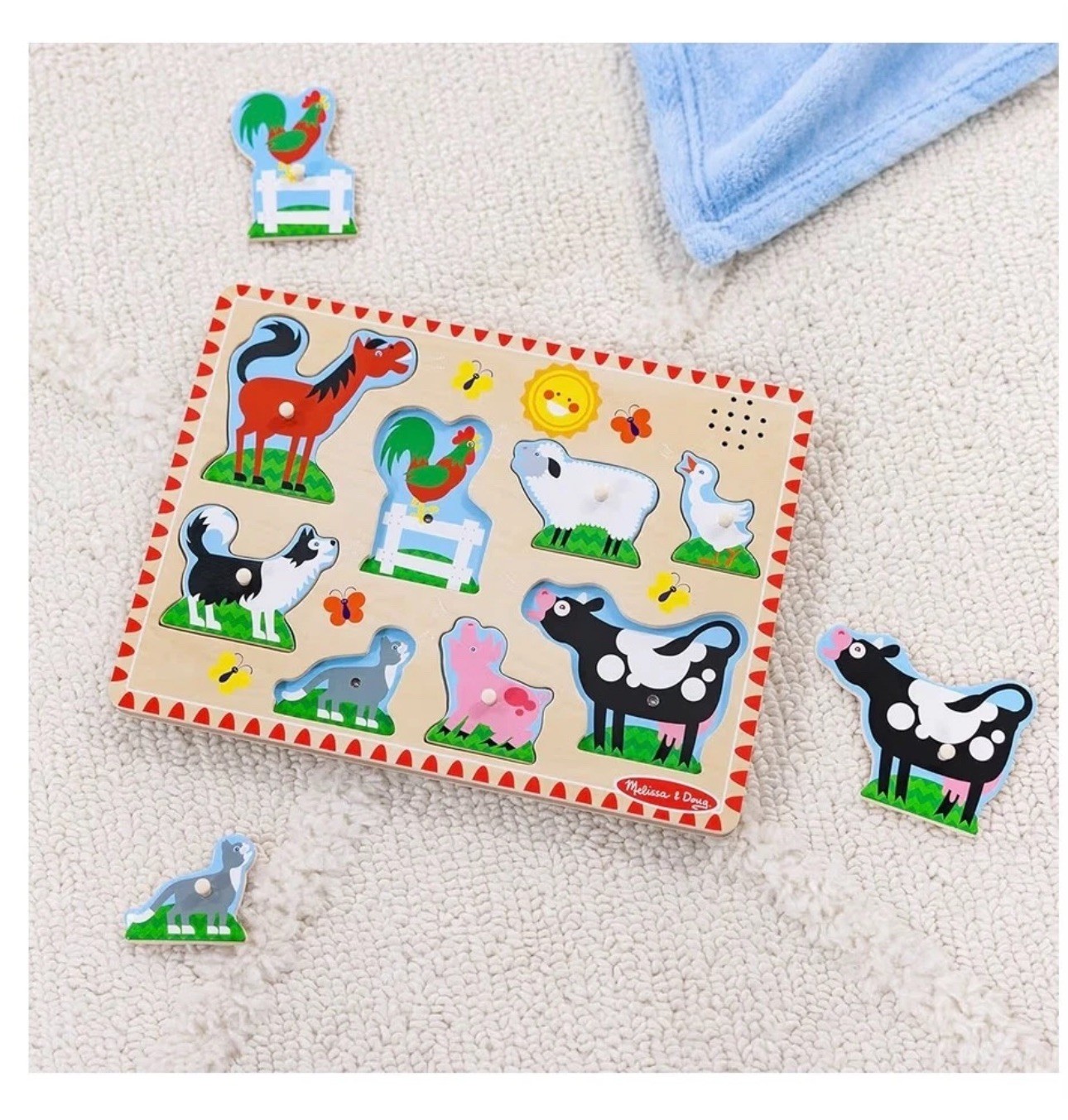 как выглядит Melissa Doug Farm Animals Sound Puzzle - Wooden Peg Puzzle with Sound Effects фото