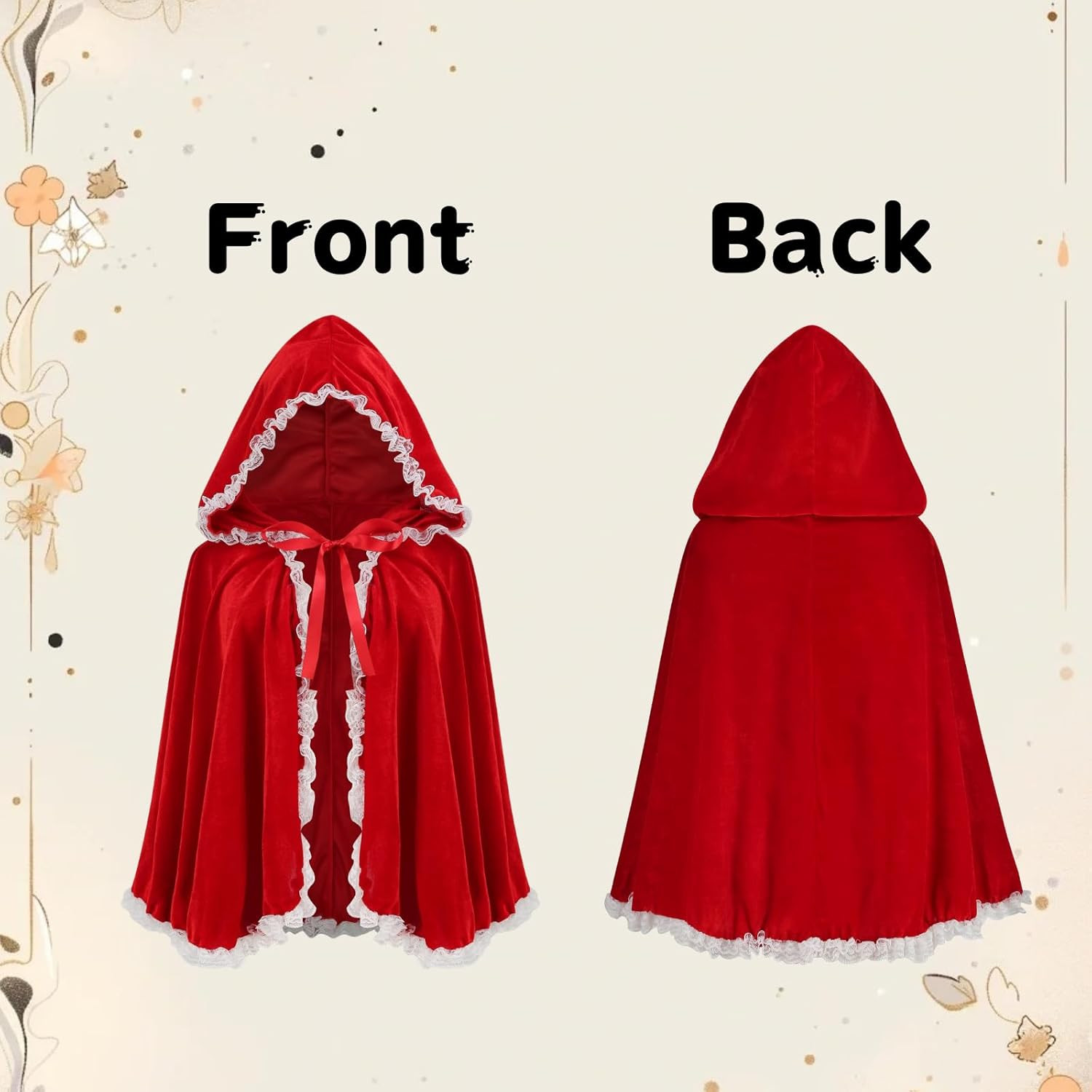 Velvet Red Riding Hooded Velvet Cloak Halloween Christmas Cosplay Party Fancy Ca