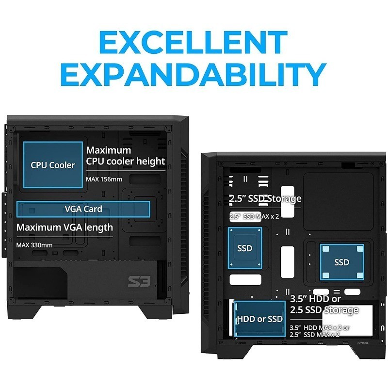 S3 TG ATX Mid-Tower Desktop PC Case, 3 x Pre-Installed 120mm Zalman Qu...