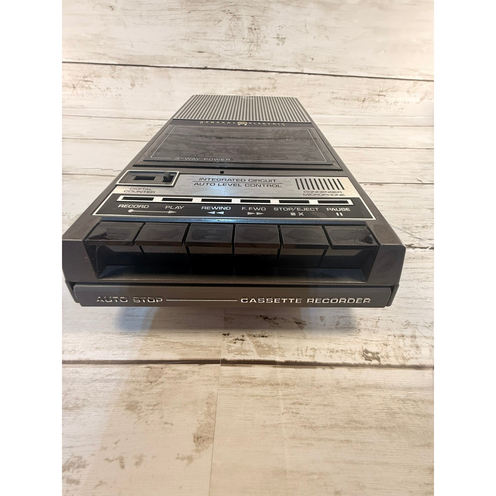 Vintage General Electric GE Cassette Recorder 3-Way Power Silver Black Portable
