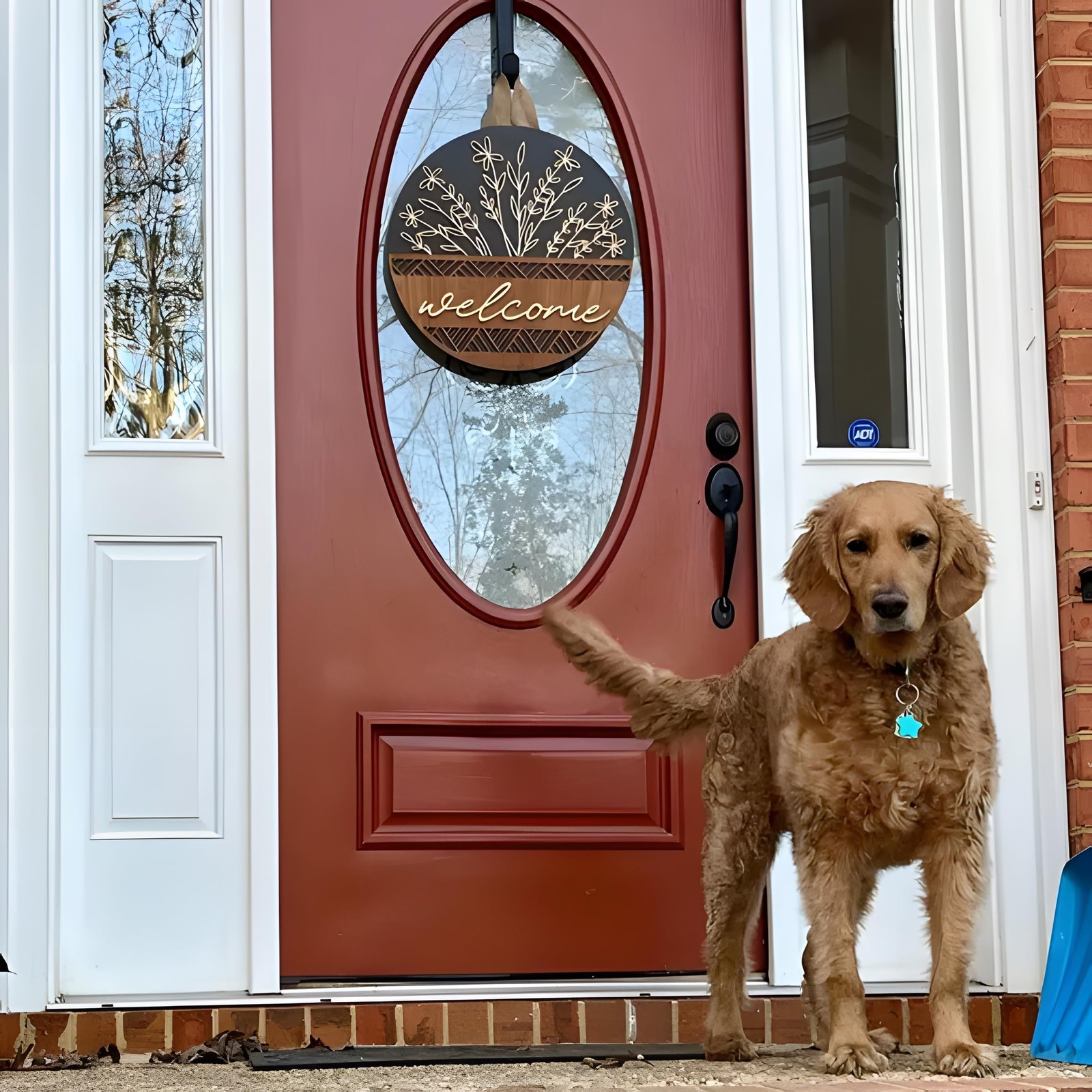 как выглядит 3D Welcome Sign for Front Door, Rustic Round Wood Wreaths Wall Hanging Modern... фото