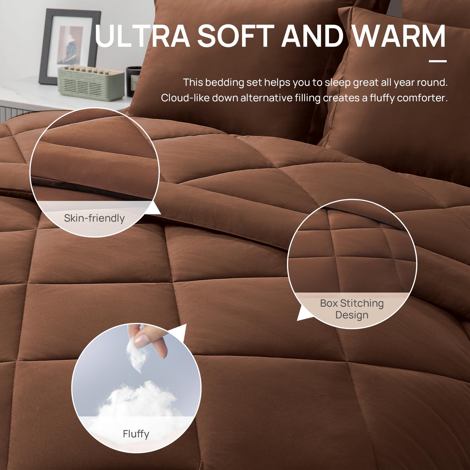 Love's cabin Full Comforter Set Brown, 7 Pieces Bed in a Full, Brown
