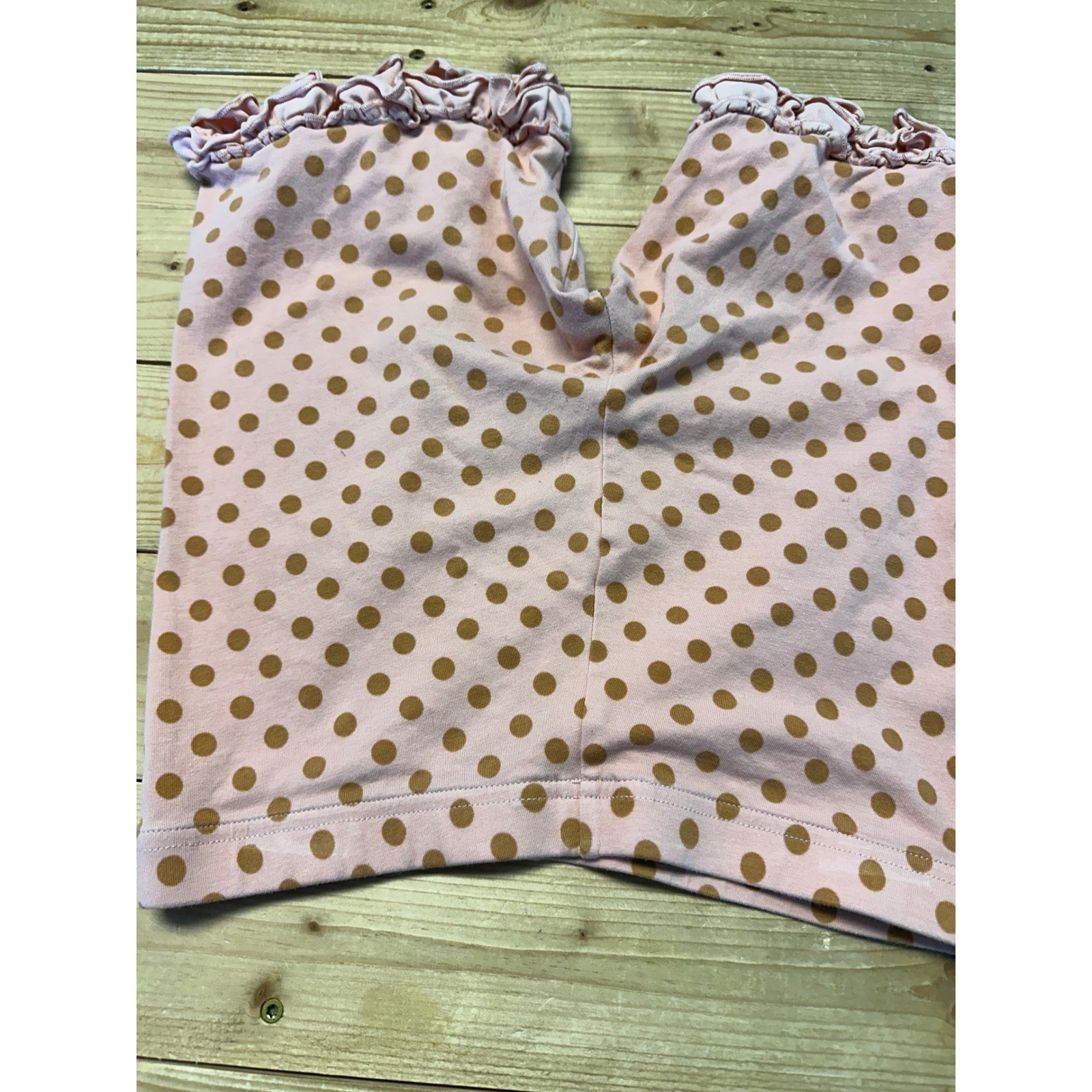 как выглядит Matilda Jane Bike Shorts 14 Girls Pink Brown Polka Dot Ruffle Hem фото