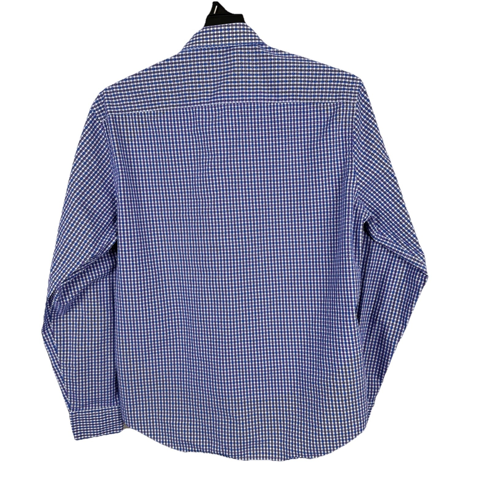 Bugatchi Men's Shirt XL Blue Purple Geometric Check Flip Cuff Cotton Shaped Fit