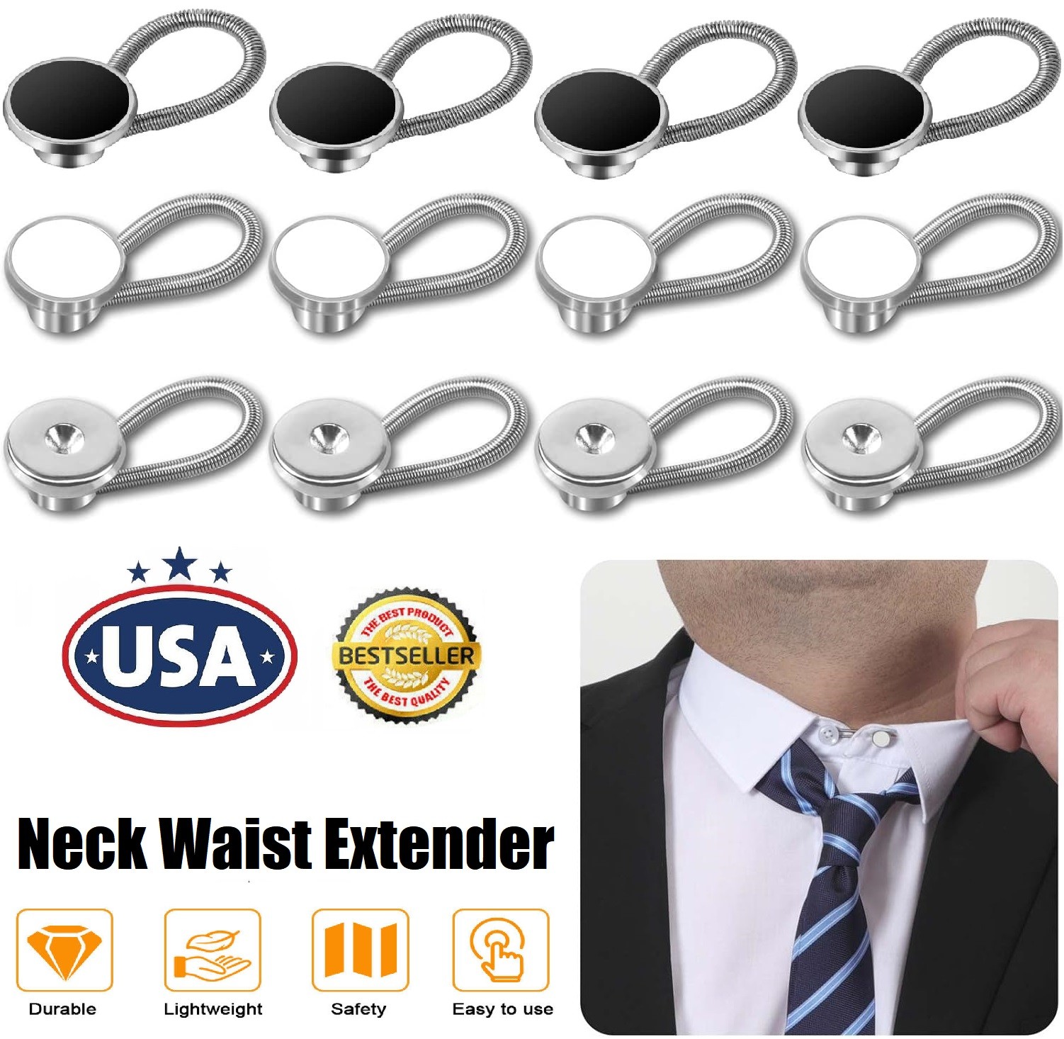 12PCS Metal Collar Neck Waist Extender Buttons Men's Dress Shirts Pants Belt USA