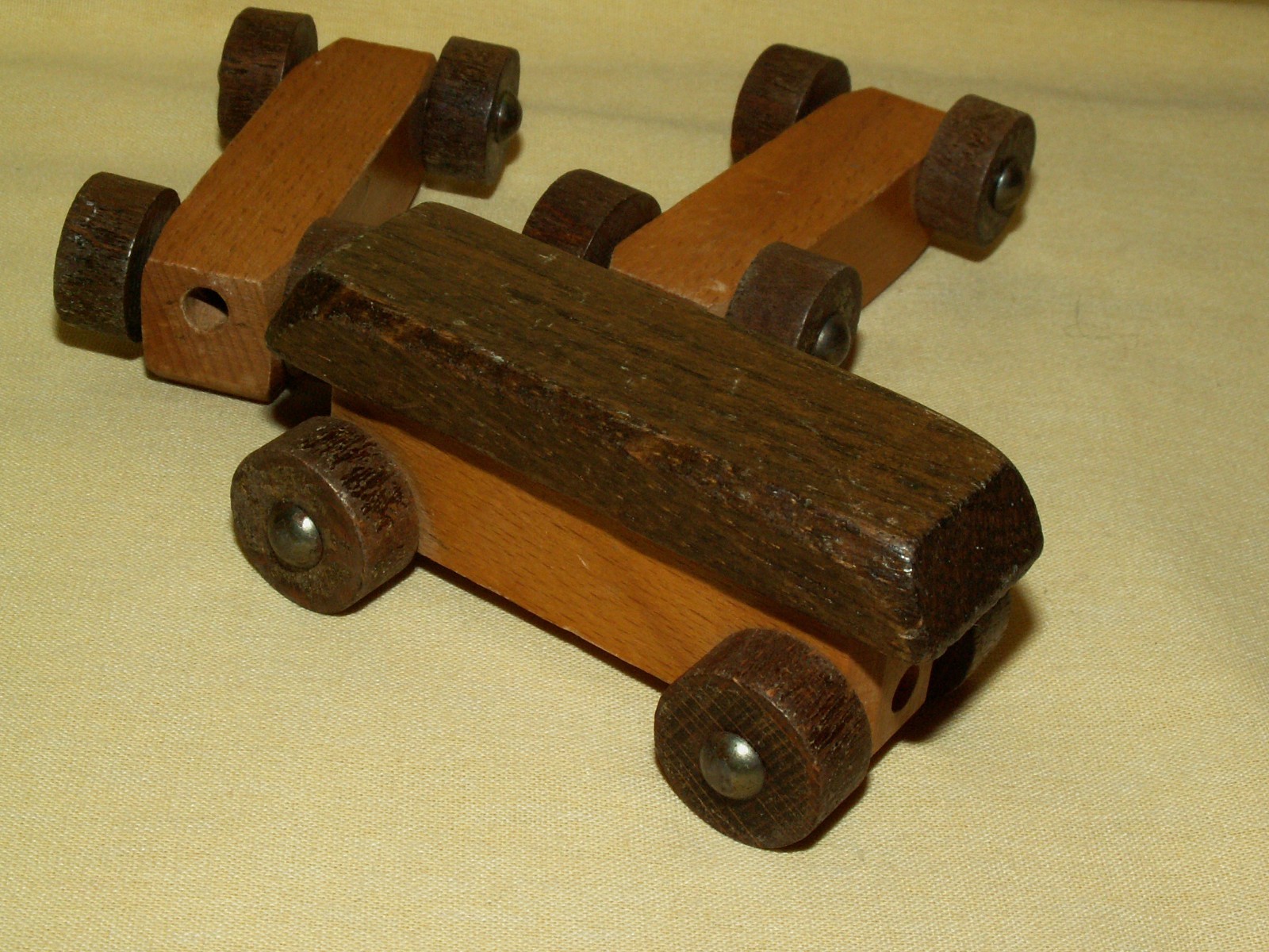 Train Set 4 Pc Wood Wooden Locomotive Passenger Car Flat Bed No Hooks As Is