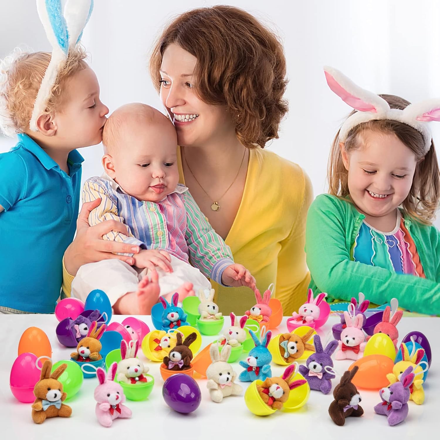 • 24 Pcs Filled Easter Eggs with Plush Bunny,Colorful Easter Eggs Prefilled with P