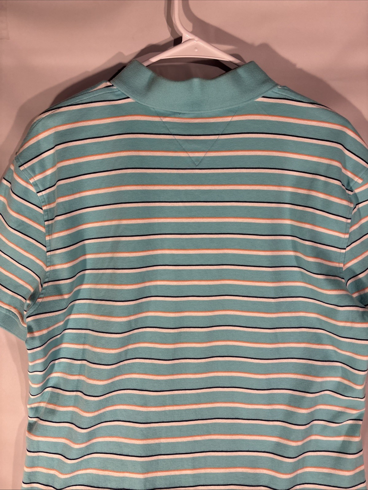 Tommy Hilfiger Polo Shirt Men's L Light Blue White Striped Classic Preppy Soft