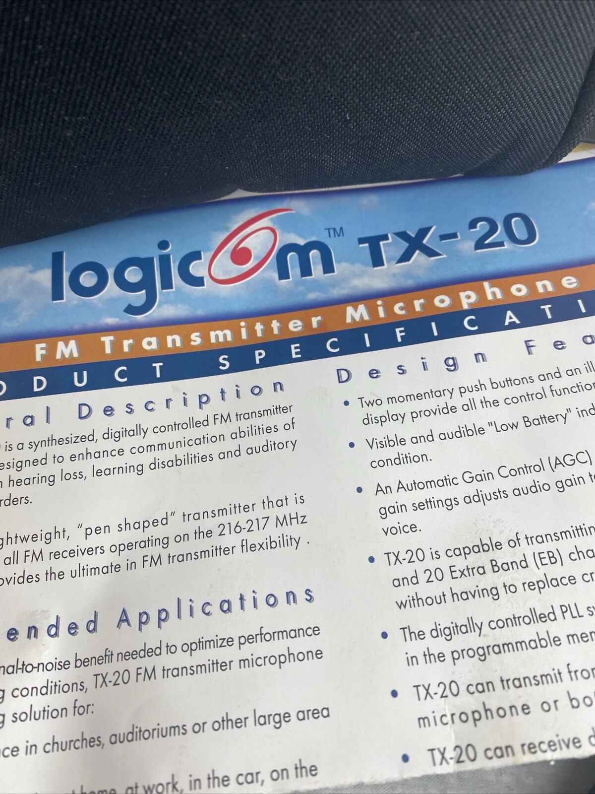 FM Transmitter Microphone AVR Logicom TX-20 With Carrying Case And Manual