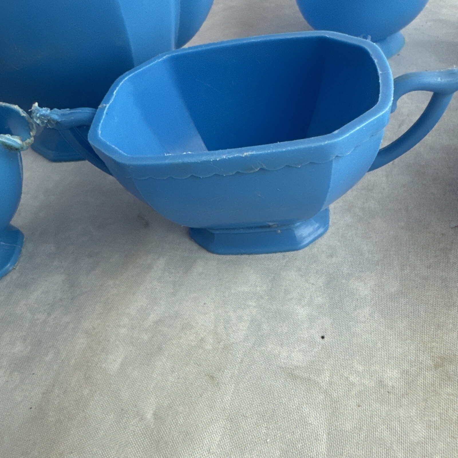 Binary USA Child's Tea Set Dishes Lot Blue Plastic Very Rare. Vintage 1960 s