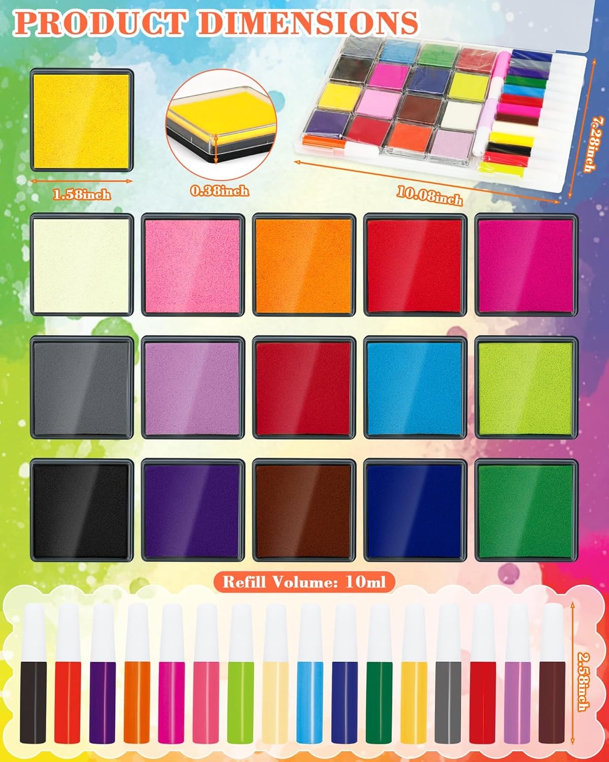 FIVEIZERO 16 Colors Ink Pad Set for Stamps, 1.58Professional Craft Ink Pads for