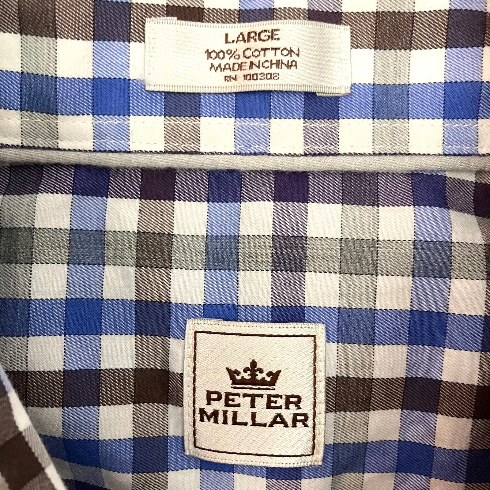как выглядит Peter Millar Mens Blue Black White Check Plaid Long Sleeve Button Down Shirt L фото